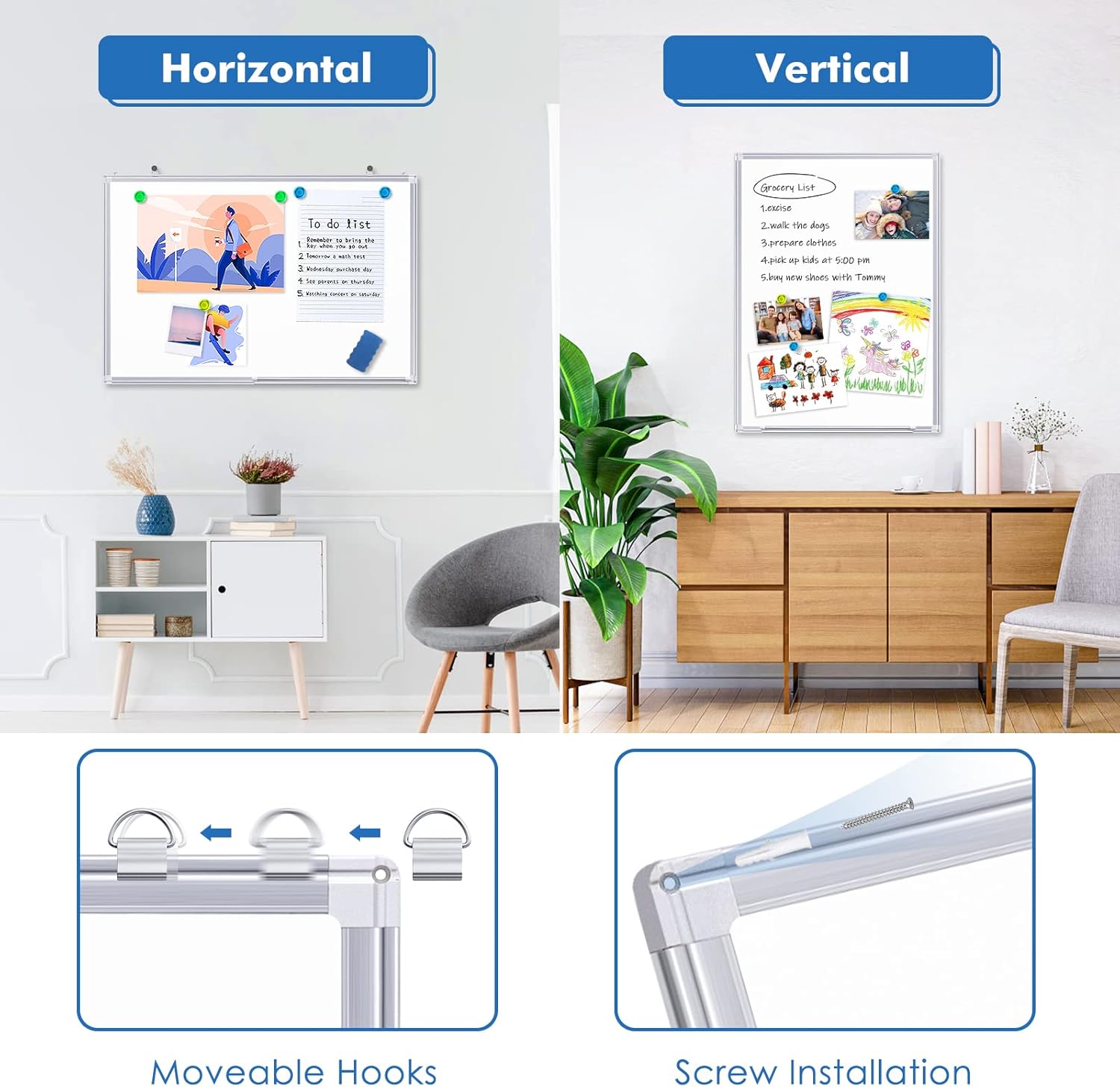White Board Dry Erase, 36 x 24 inch Magnetic Dry Erase Board Whiteboard for Wall, Aluminum Frame Hanging Whiteboard Marker Board Writing Board