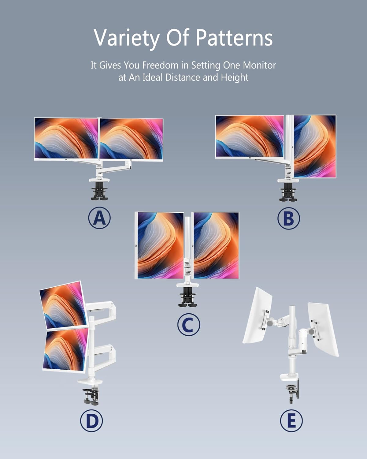 - 【Premium Spring Arm】 E66 features a flexible movement structure, enables instant and effortless adjustments, and can also work as vertical monitor stands for 2 monitors to achieve the optimal orientation for work.