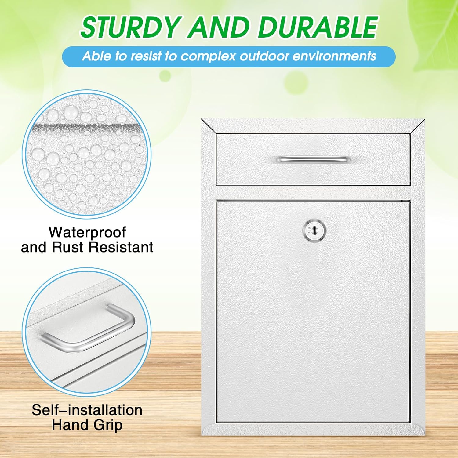 - Quality Material: crafted from quality metal material, this robust drop box promises durability; The wall mount mailbox is coated with creamy white plating which prevents peeling off paint and rust, extending the product's service life