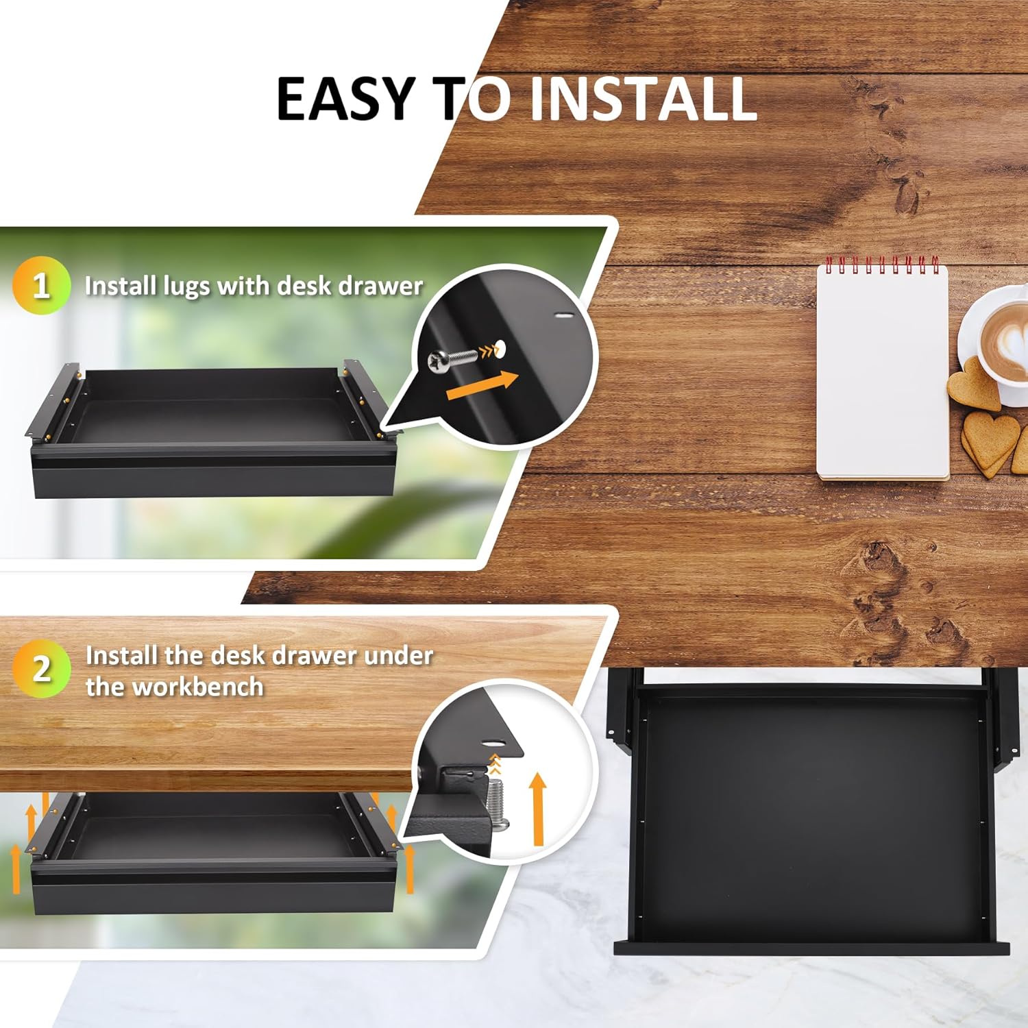 - Premium Material: Under desk drawer is made of premium cold steel ,high strength, good stability, strong anti-oxidation ability, ensure durability and long life. the surface matte black powder coating, which prevents scratching surface, easy to clean