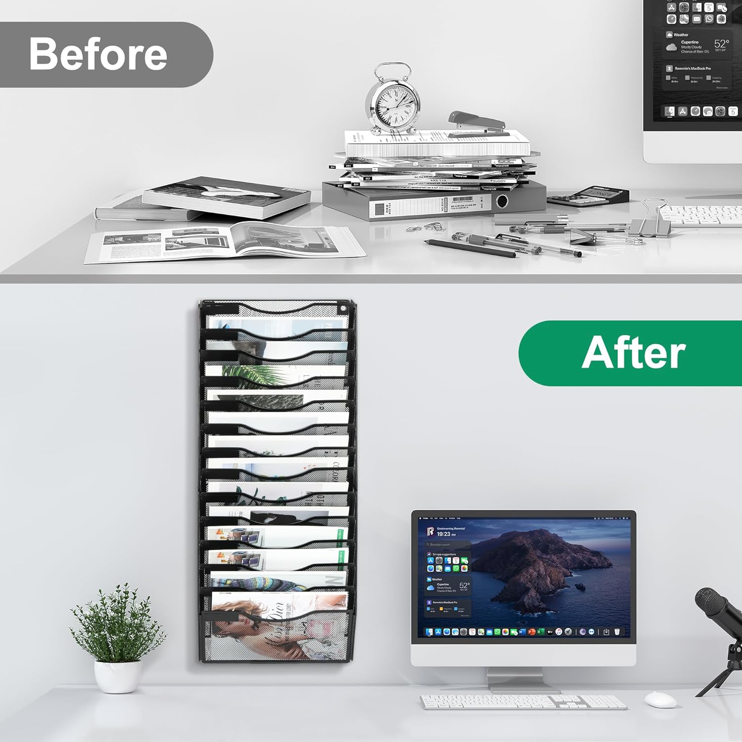 - More Space: with our 10 pockets wall organizer to free up more space on your desk. With large storage capacity, you can store your excess items on the wall, making your desktop space more organized and efficient