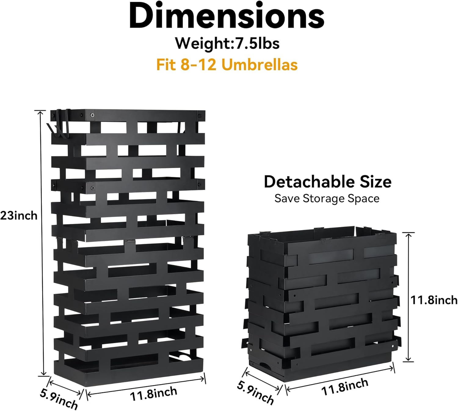- 【Space Saving】: This indoor umbrella stand for entryway features a compact and detachable design that saves space and keeps various umbrellas organized.