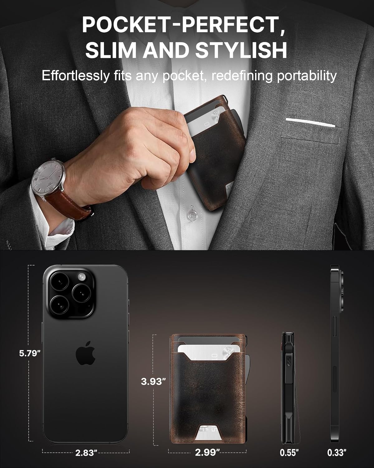- Quick Card Access: Designed for speed, this wallet's smart pop up mechanism allows you to instantly view and select your cards. The front and back pocket provide 3 quick-release option for your frequently used card, ensuring they're always within reach.