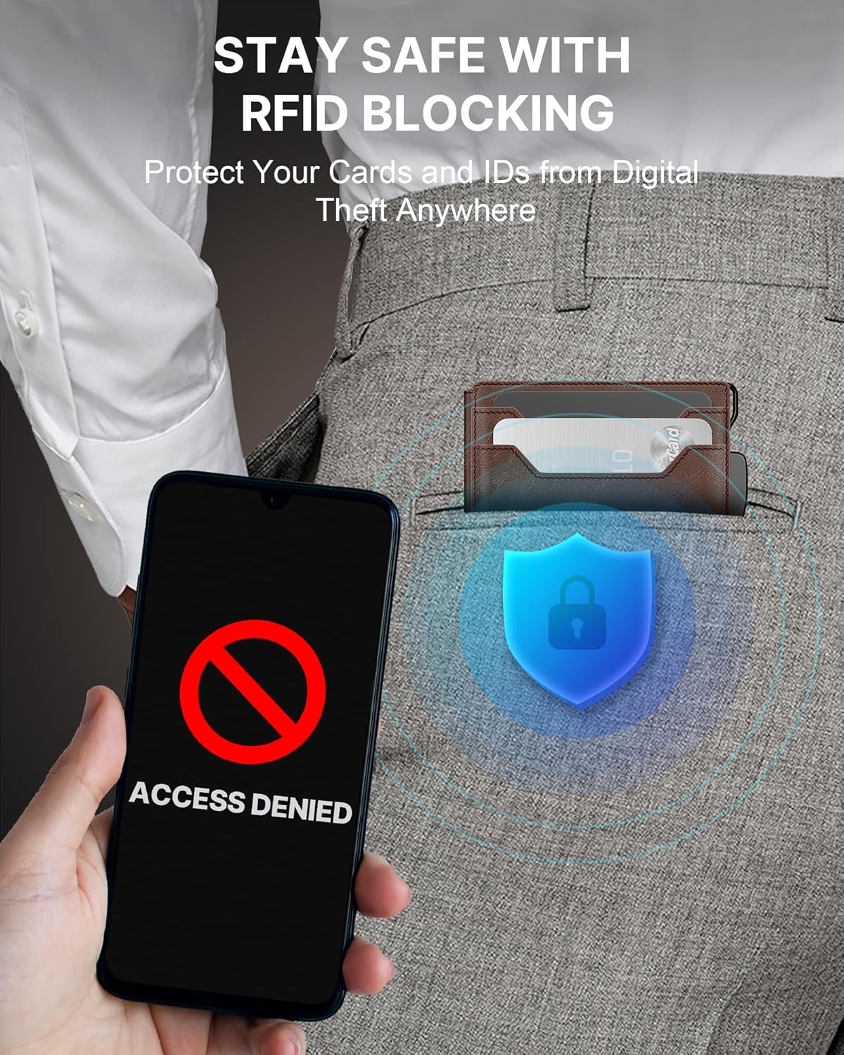 - RFID Protection: Protect your cards and personal information with advanced RFID blocking technology, effectively blocking the 13.56 MHz frequency. This ensures that your cards are protected from unauthorized scanning.