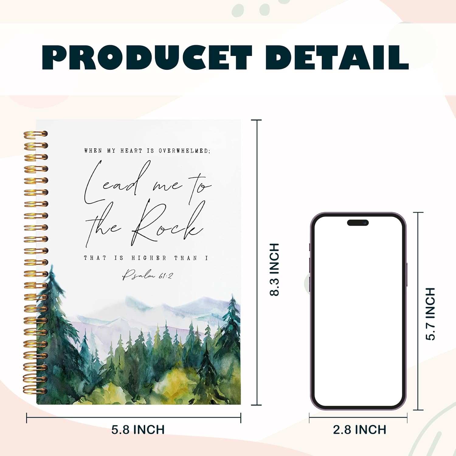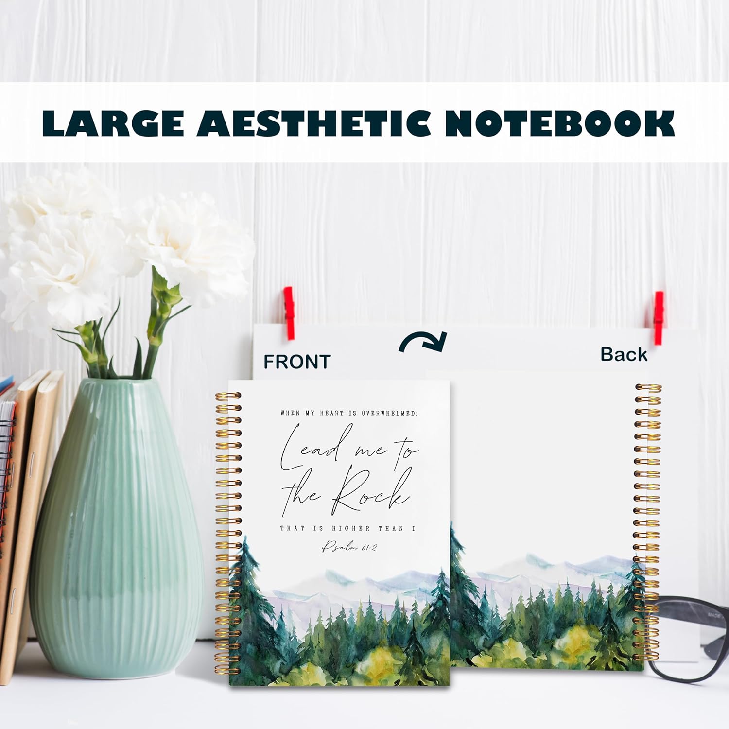 BearCake Christian Notebook Journal, Prayer Journal for Women, Lead Me To the Rock That is Higher Than I Bible Notebooks for Note Taking, Watercolor Woodland Hardcover Spiral Notebook 5.5x8.3