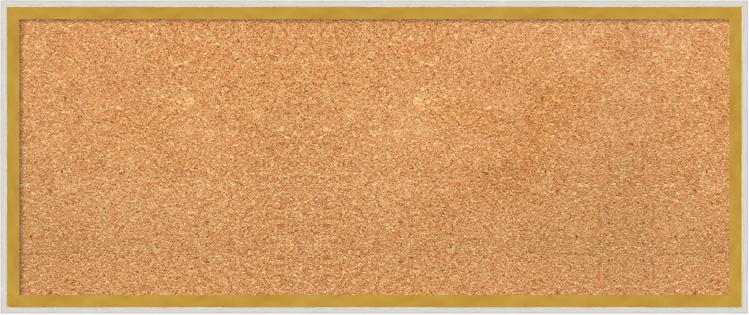 Amanti Art Natural Cork Board for Wall, 13x31 Vision Board with White Frame, Medium Corkboard Office Decor for Home Organization, Modern Corkboard Pinboard to Display Items for Home Organization in