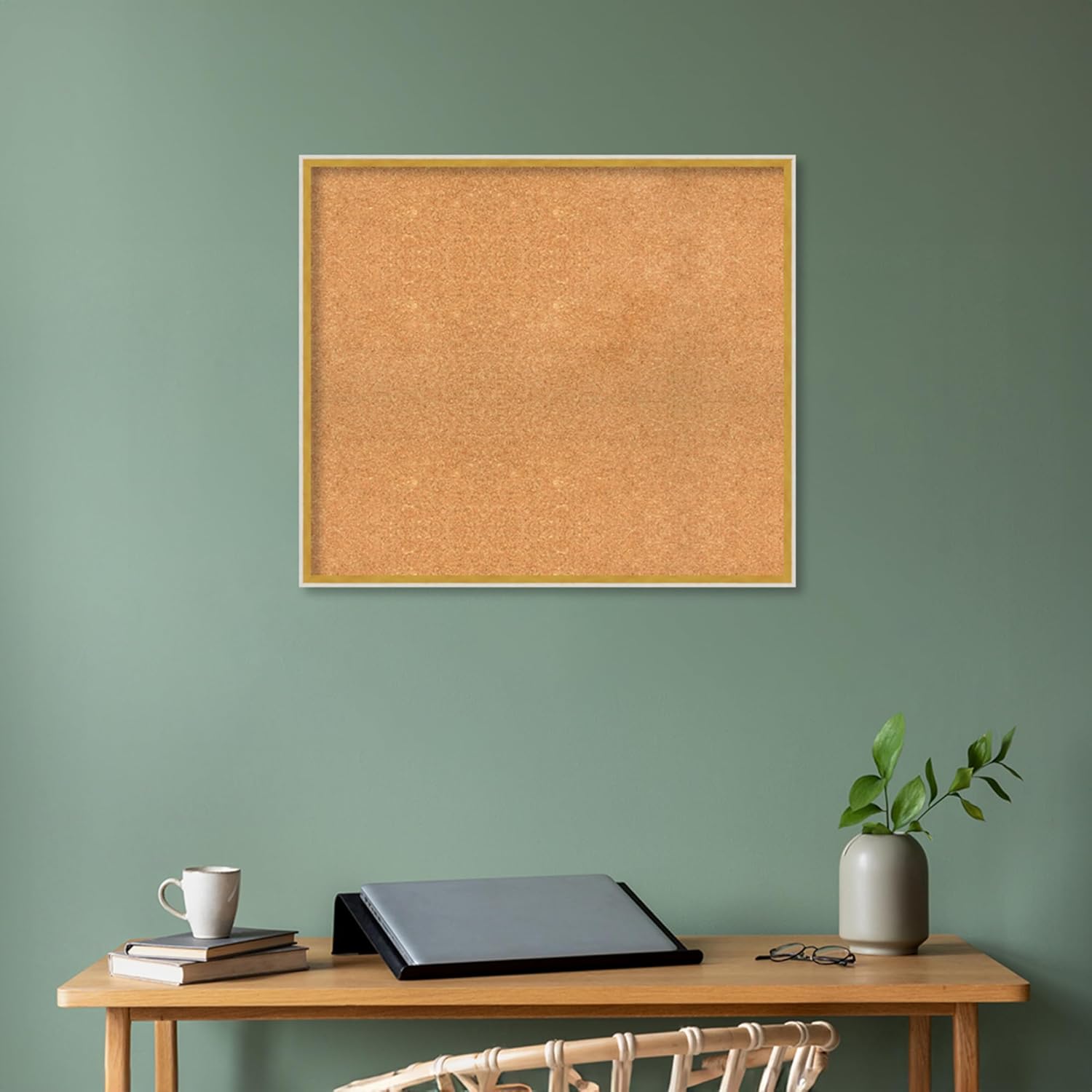 Amanti Art Natural Cork Board for Wall, 27x31 Vision Board with White Frame, Large Corkboard Office Decor for Home Organization, Modern Corkboard Pinboard to Display Items for Home Organization in