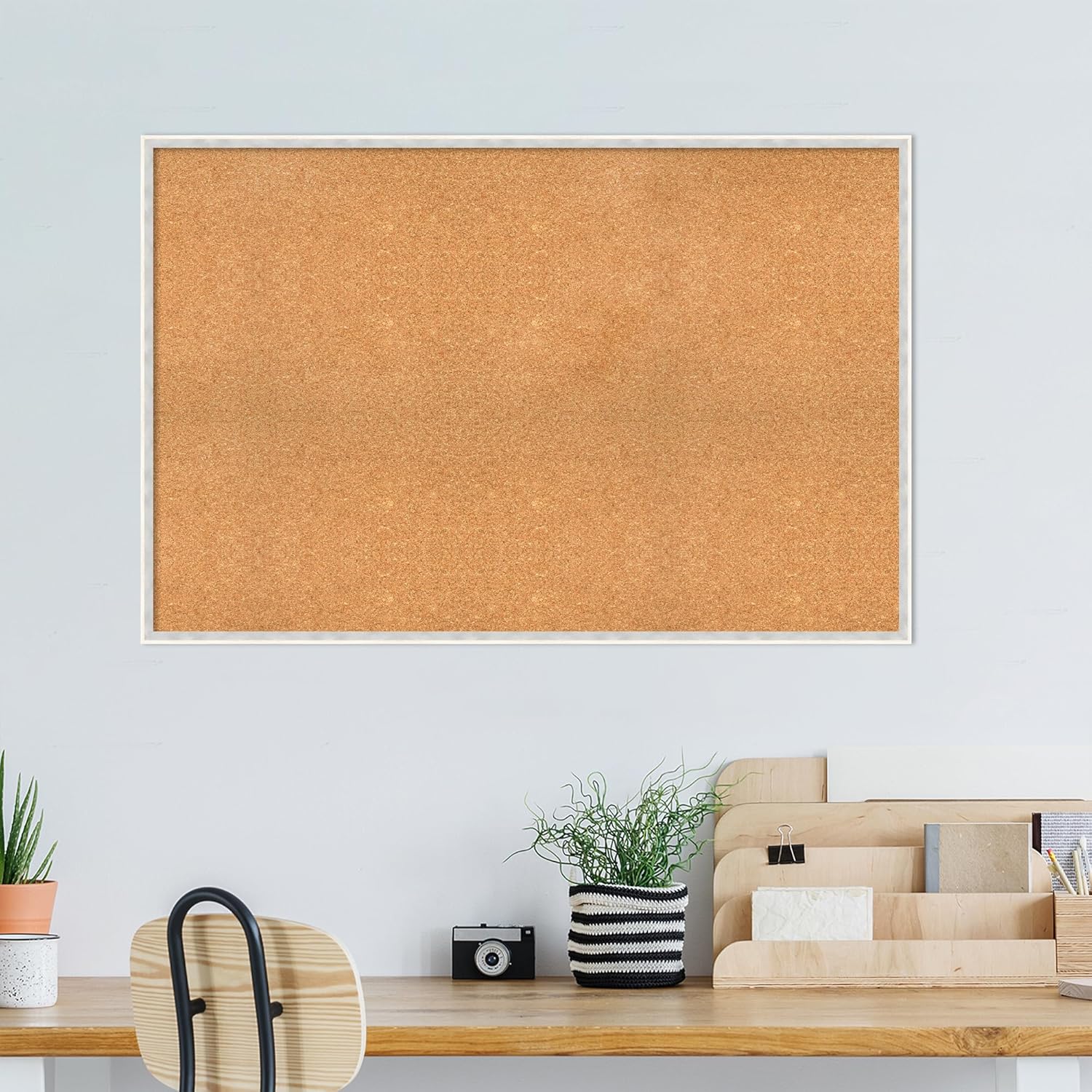 Amanti Art Natural Cork Board for Wall, 31x47 Vision Board with White Frame, Oversize Corkboard Office Decor for Home Organization, Modern Corkboard Pinboard to Display Items for Home Organization in