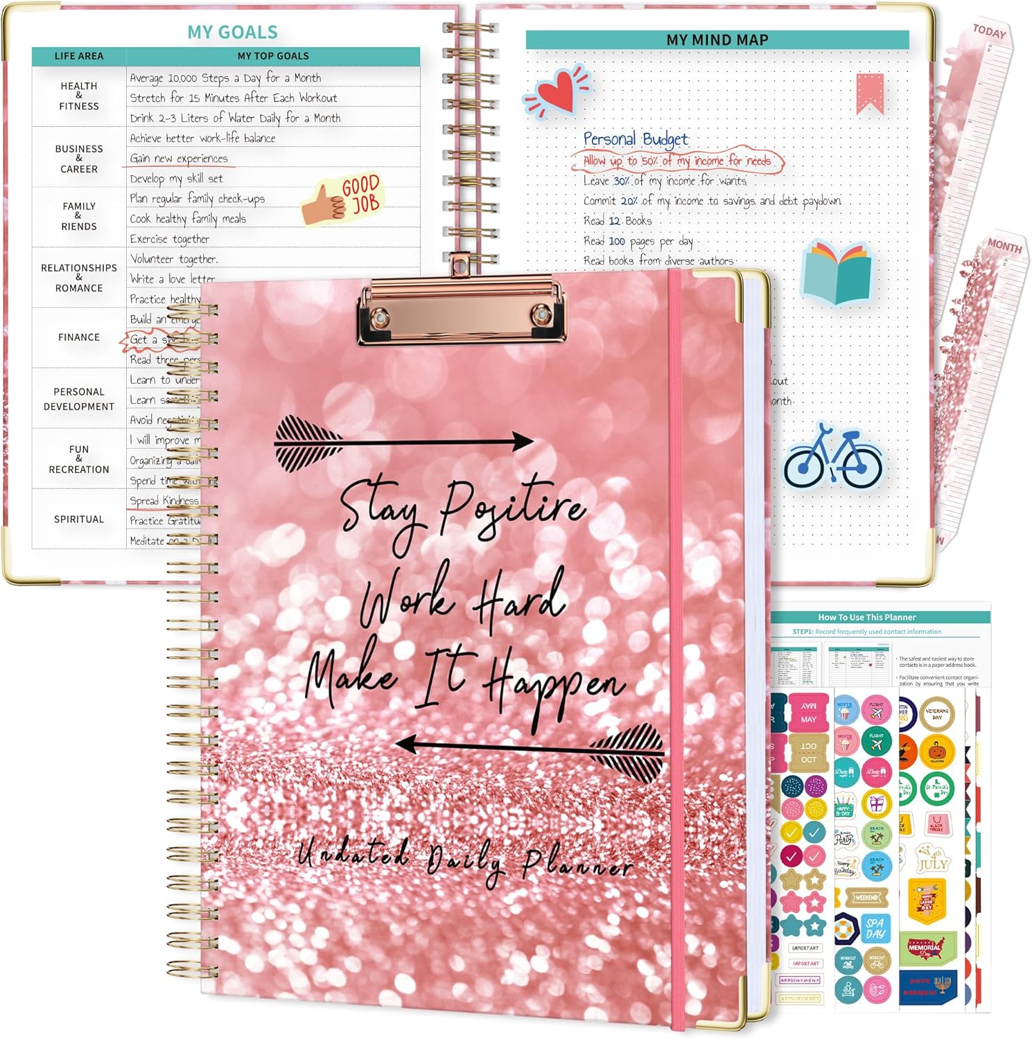 - Boost Your Productivity: Additional accessories included: instructions, bookmarks, stickers, and labels. Whether for work, study, or personal use, this planner is the perfect tool for achieving your daily priorities and taking control of your schedule.