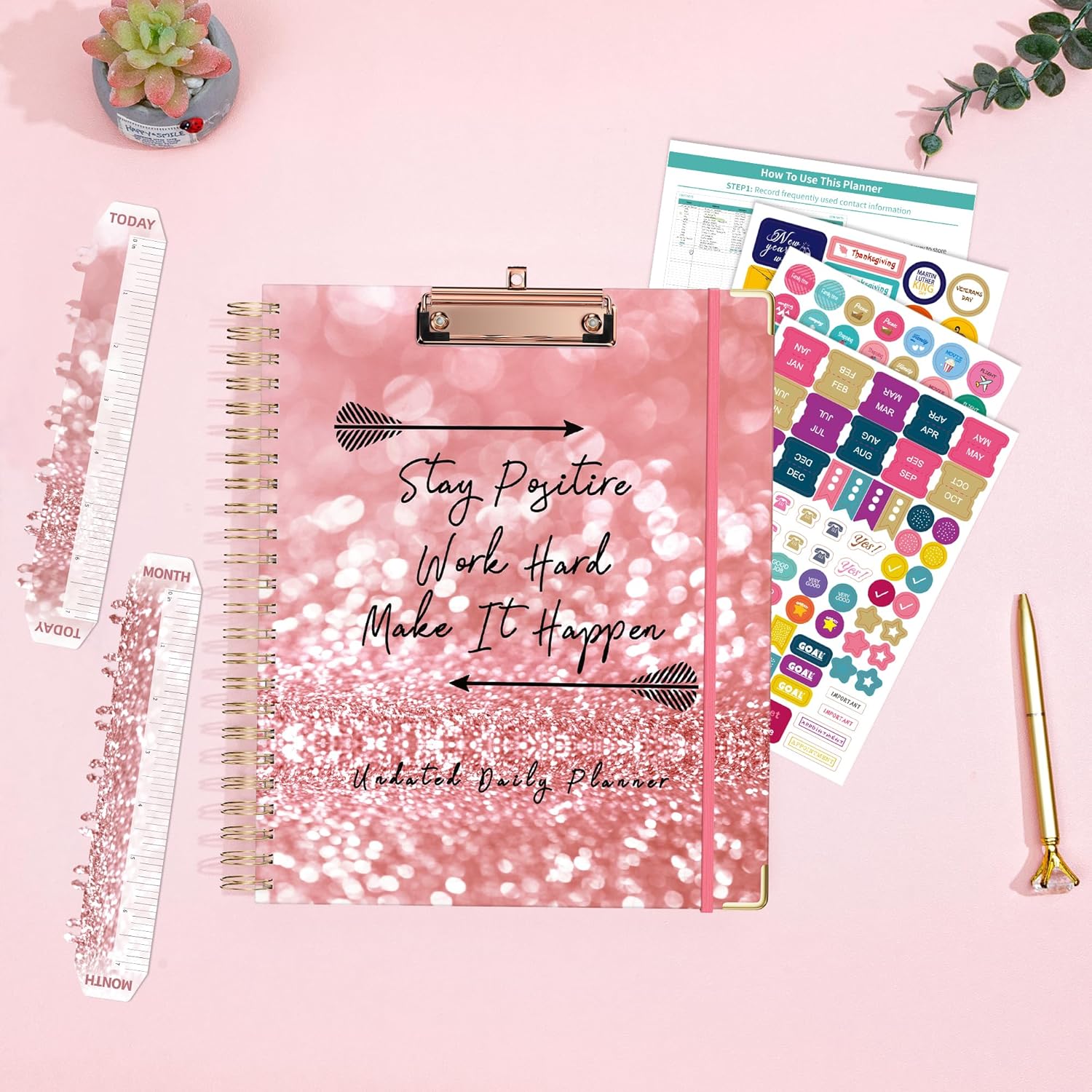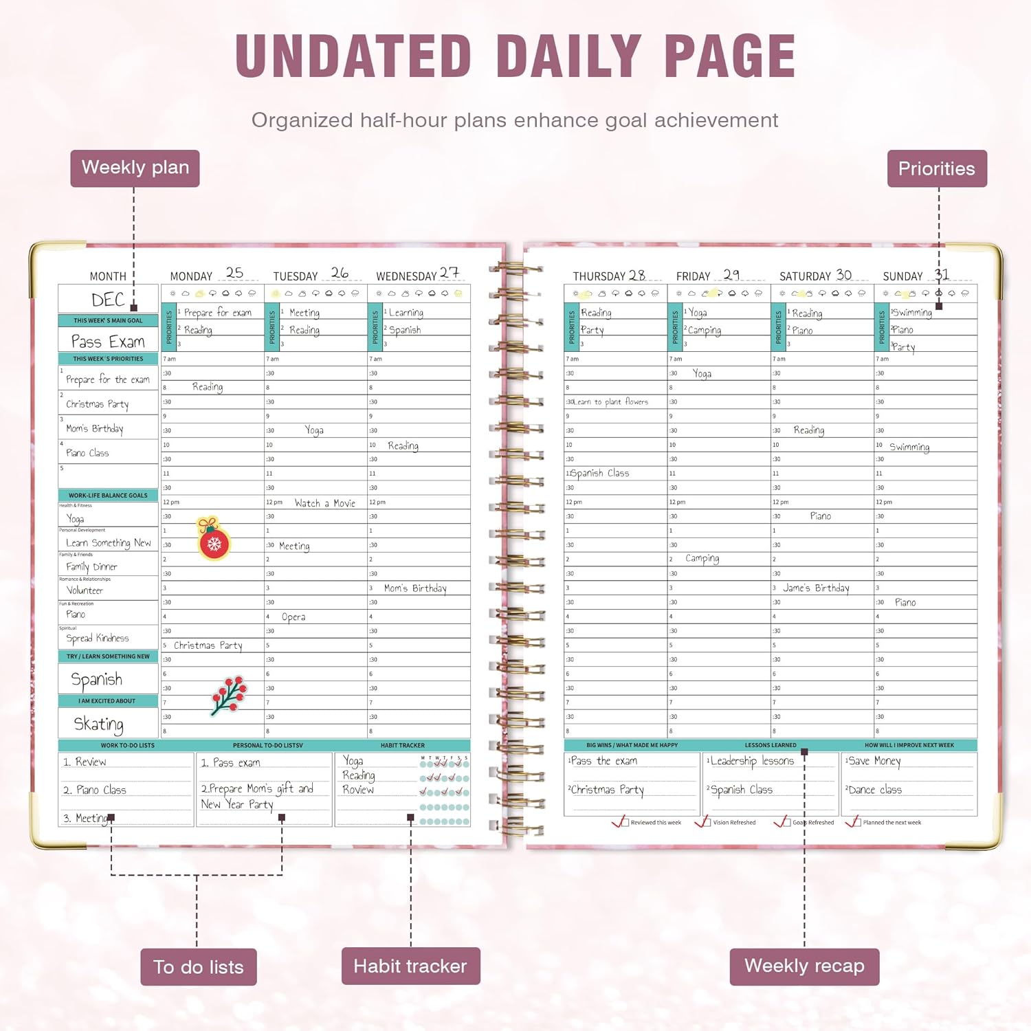 Ospelelf Undated Spiral Bound Planner Daily, Weekly and Monthly Planner, Pink Teacher Planners 12 Month 8.5 x 11