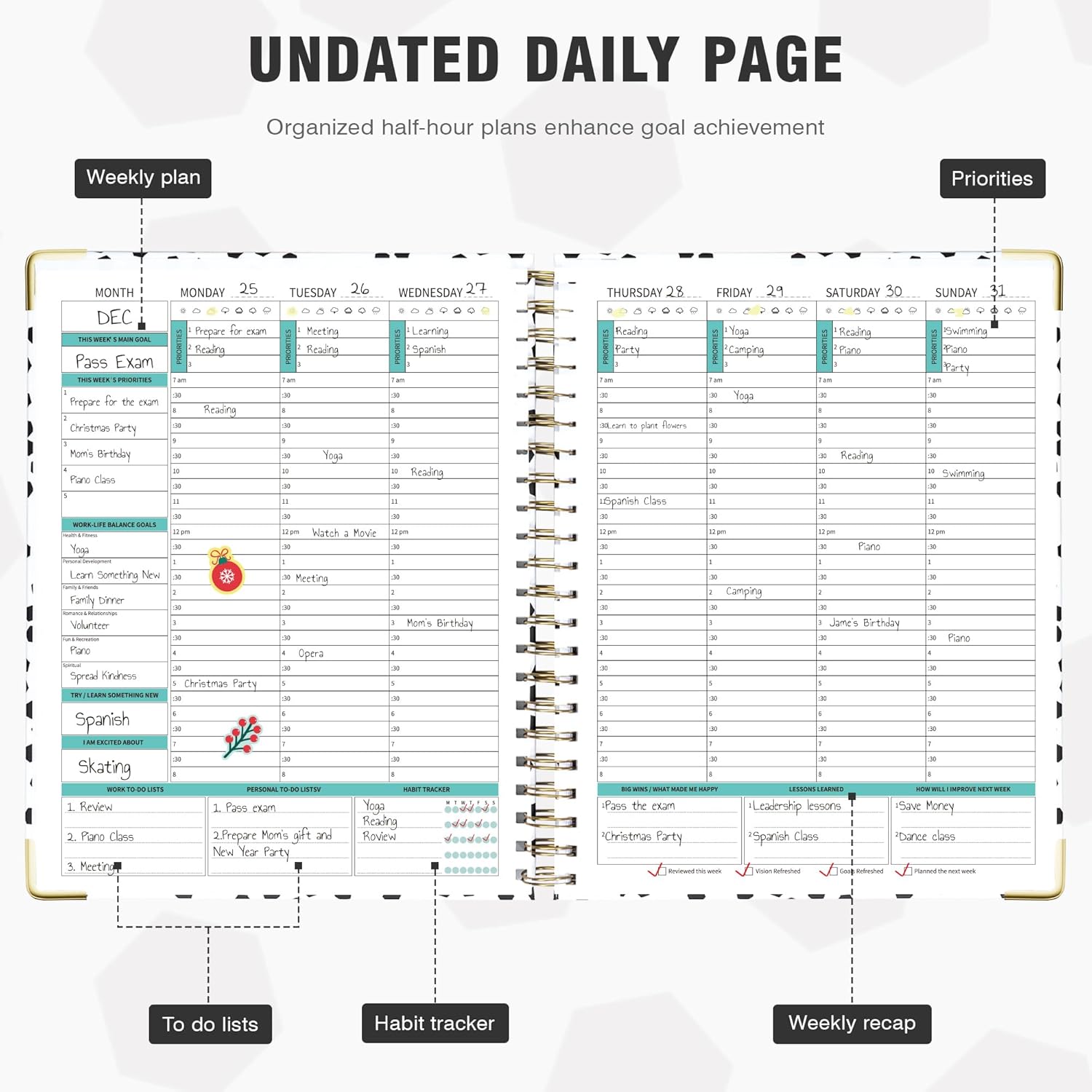 - Versatile Organizer: Whether you need to keep track of your daily schedule, set goals, or jot down notes, this spiral planner is a great choice for anyone who values organization and productivity.