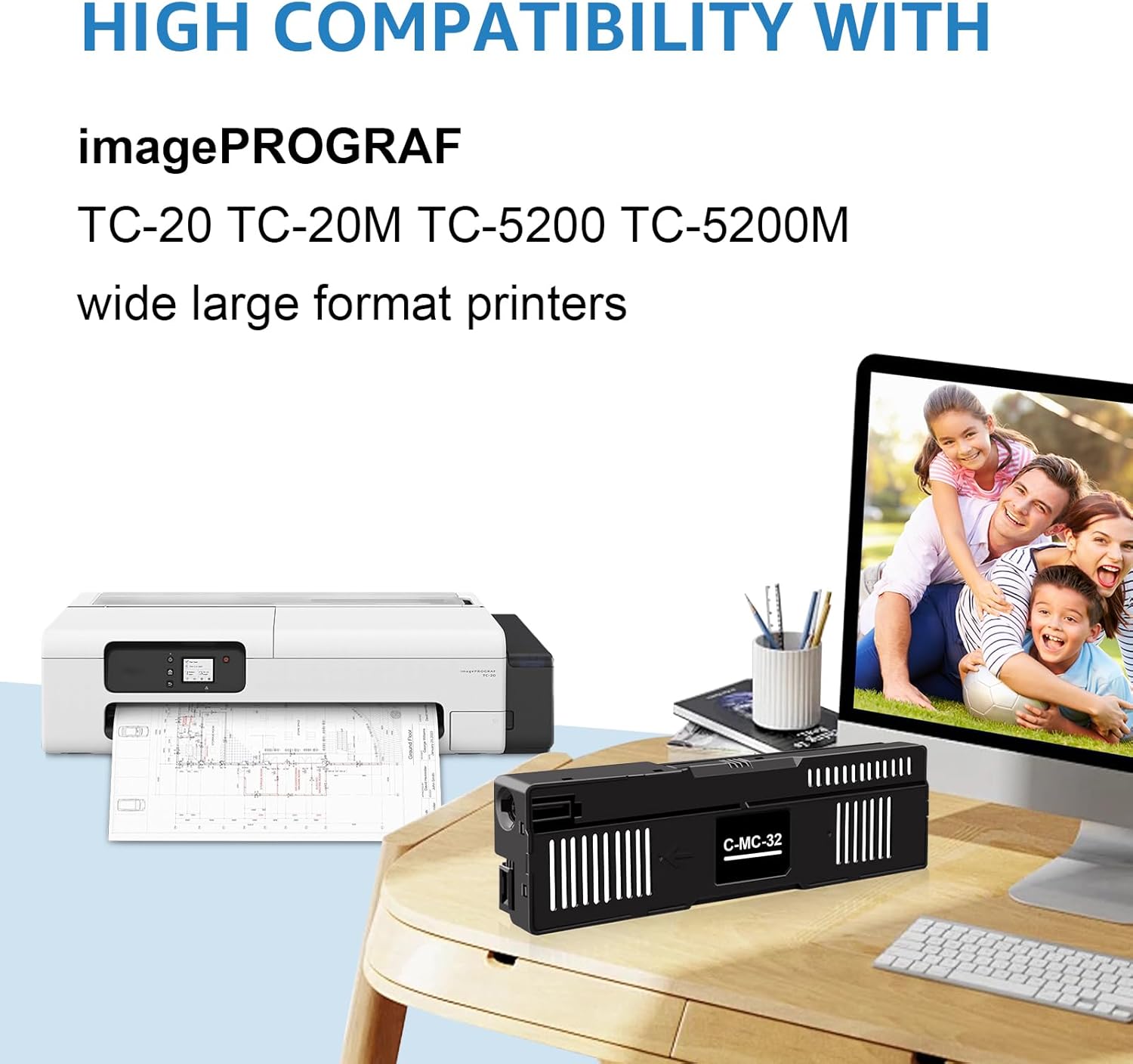 - ăMC-32 Maintenance Tank High CompatibilityăCompatible for Canon imagePROGRAF TC-20 TC-20M TC-5200 TC-5200M wide large format printers.