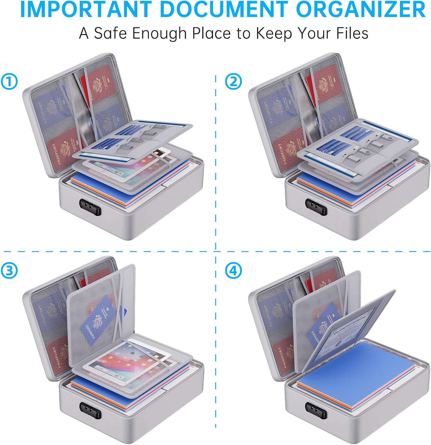 - Combination Lock Protection: Compared with other bags,our 5200°F fireproof document organizer bag can lock files and items inside the bag for safety. High-quality password lock provides maximum security for your valuables such as contracts, cards, certificates, conference materials, passports, etc. The package includes an instruction manual for lock(No keys required).Fireproof bag for files is sealed with professional waterproof zippers that can withstand high speed spray of fire hose.