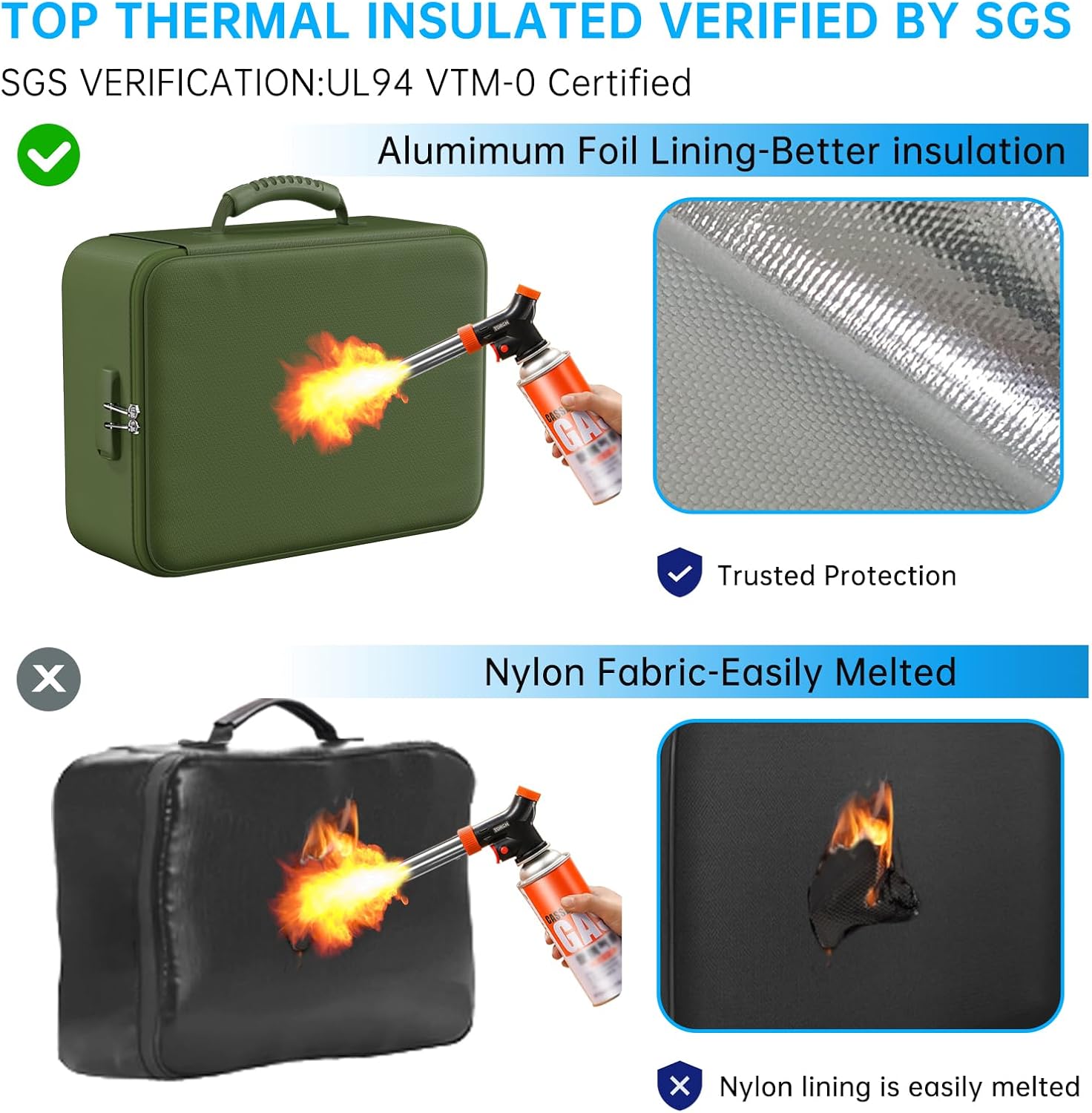 ENGPOW 5200°F Fireproof Document Bag with Lock, Upgraded Heat Insulated Fireproof&Waterproof Box 8 Layers Document Organizer, Portable Home Travel Safe Storage Box for Important Files, Laptop,Green