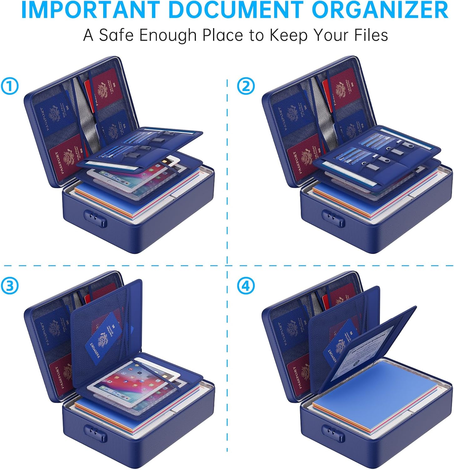 ENGPOW 5200°F Fireproof Document Bag with Lock, Upgraded Heat Insulated Fireproof&Waterproof Box 8 Layers Document Organizer, Portable Home Travel Safe Storage Box for Important Files, Laptop, Blue