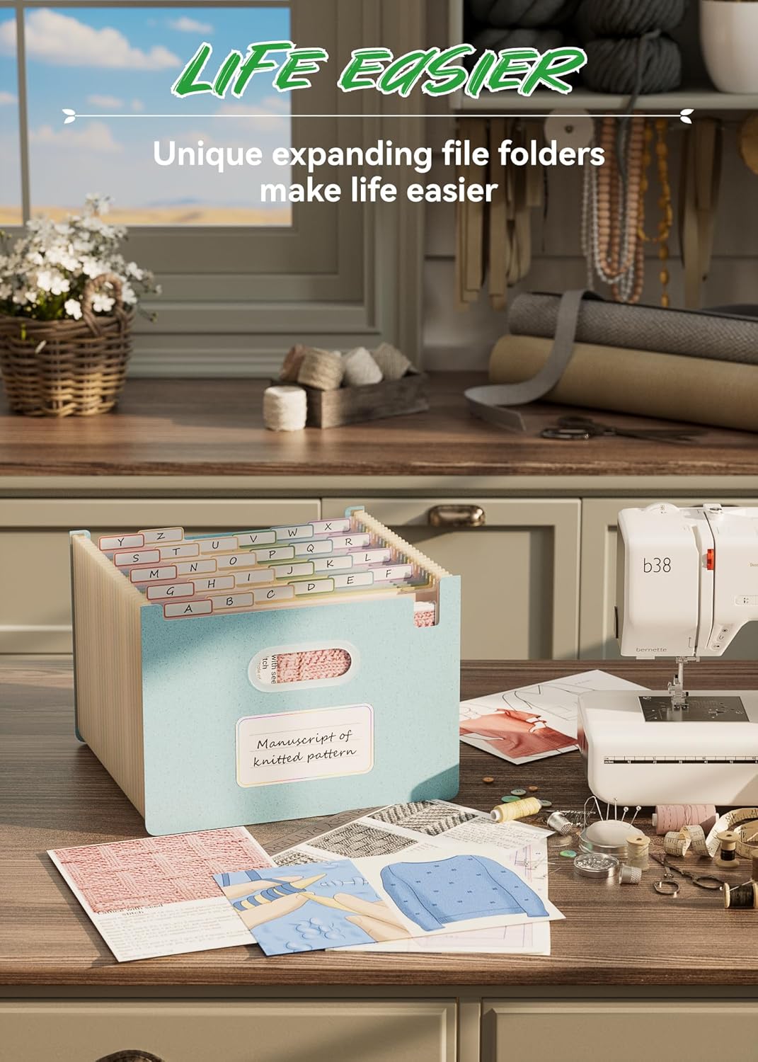 Accordion File Organizer, 26 Pockets Wheat Straw Expanding File Folders, Upright&Open Top, A-Z Bill Receipt Organizer, 100% BPA Free, Return to Nature, Healthy Living, Letter/A4 Size-Sky Blue