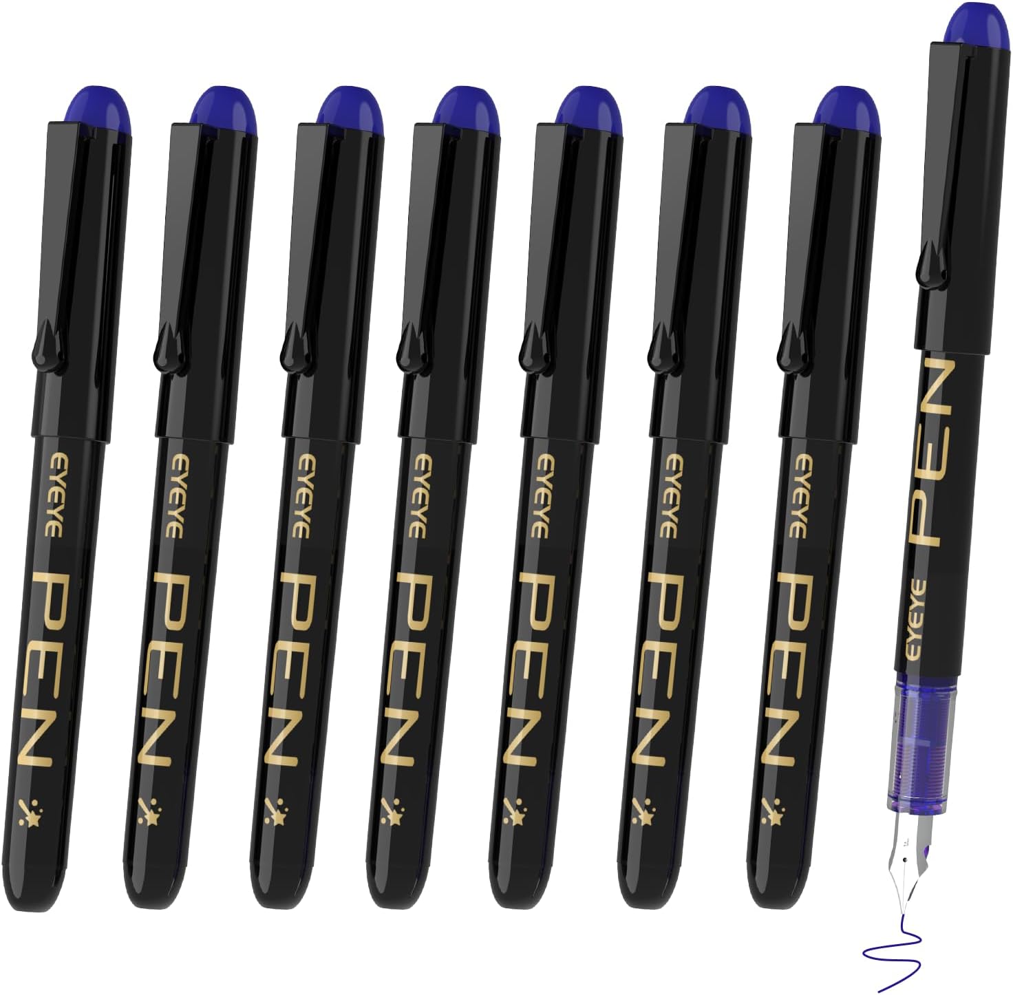 EYEYE Fountain Pens for Writing, 8 Pack Blue Fine Point Pens Disposable Fountain Pens Stainless Steel Nib, Smooth Writing for Calligraphy, Journaling, Drafting, Sketching, Doodling & Office Supplies