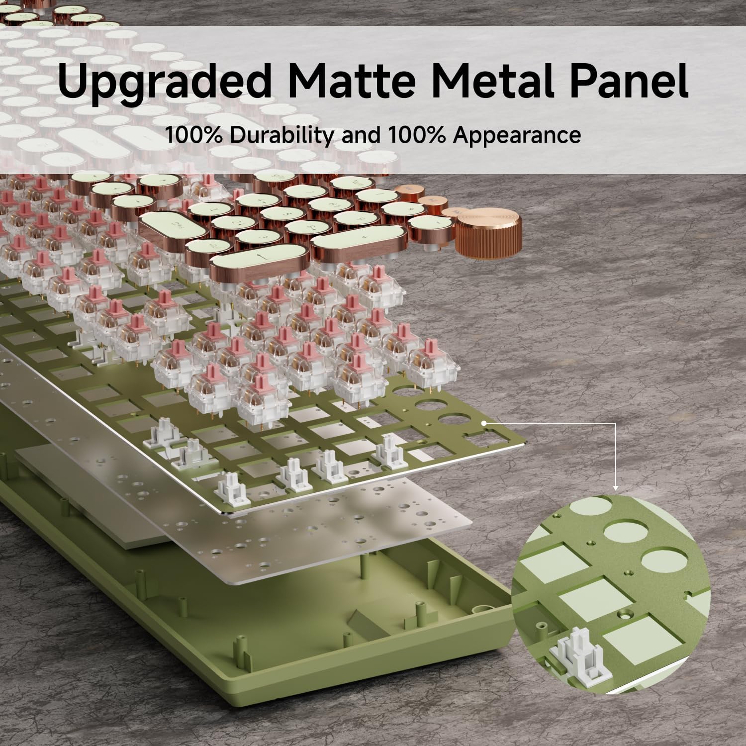 - 【Metal Panel and Electroplated Punk Keycaps】:The typewriter gaming keyboard panel is made of top-grade aluminium alloy, with a metallic matte texture, sturdy and robust enough to protect it from scratch. The floating keycaps are carefully crafted using metal plating technology, with a unique monochromatic light that instantly makes your keyboard look stunning, and enhances the feeling of the wired backlit keyboard.