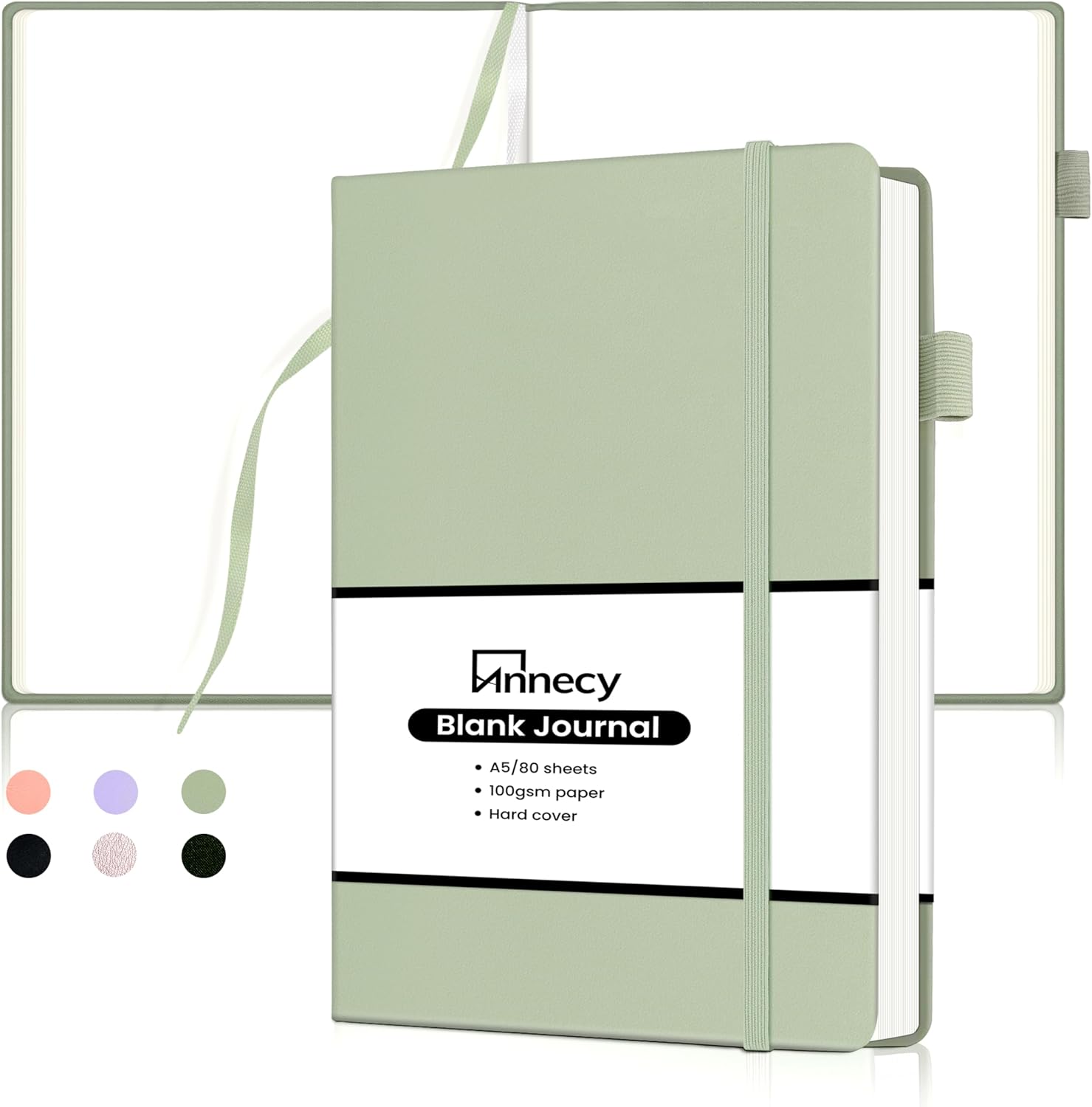 Annecy Blank Journal Notebook, Medium 5.5x 8.25, 160 Pages 100GSM Writing Paper, A5 Grey Green Faux Leather Cover with Pen Loop