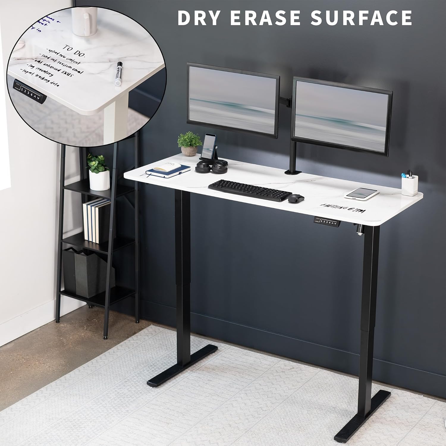 VIVO Electric Dry Erase 60 x 24 in Standing Desk, Memory Height Adjustment, 1B Series, White Marble Pattern Top, Black Frame, DESK-KIT-1B6WM