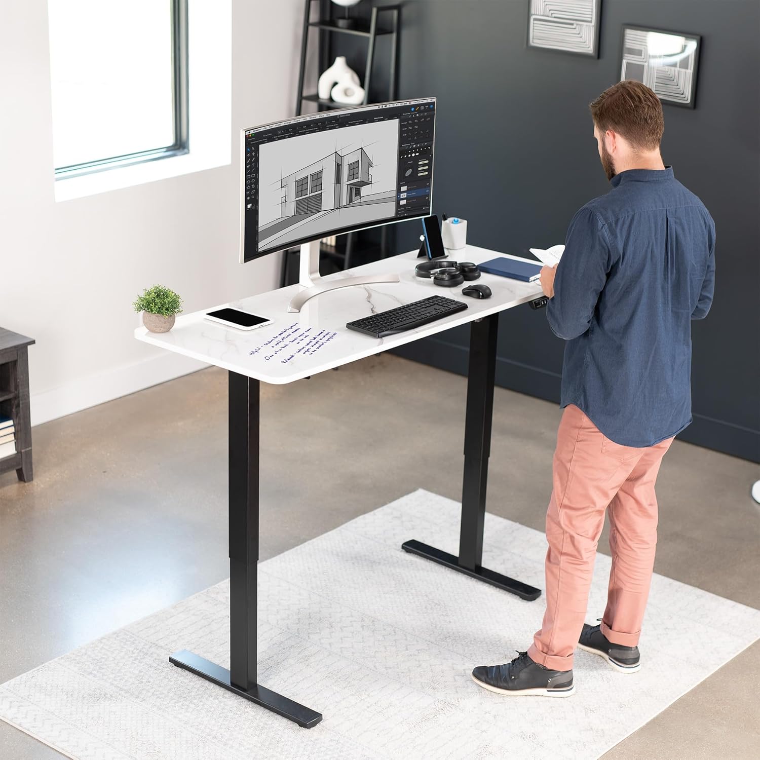 - Dry Erase Surface: A sleek marble whiteboard finish covers the entire top for elaborate sketches or note-taking. Clean-erase design means youβre always ready to tackle the next project, reducing your need for sticky notes and paper tablets