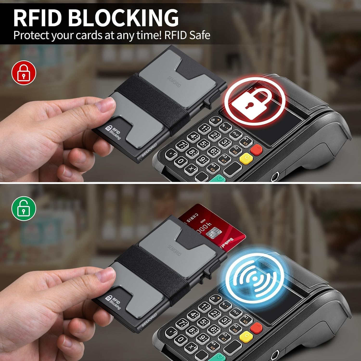 - π RFID & NFC BLOCKING: This smart wallet use advanced aluminium technology to protect your cards from unauthorized and contactless scanning. Stop thieves from cloning your bank cards and prevent data theft.