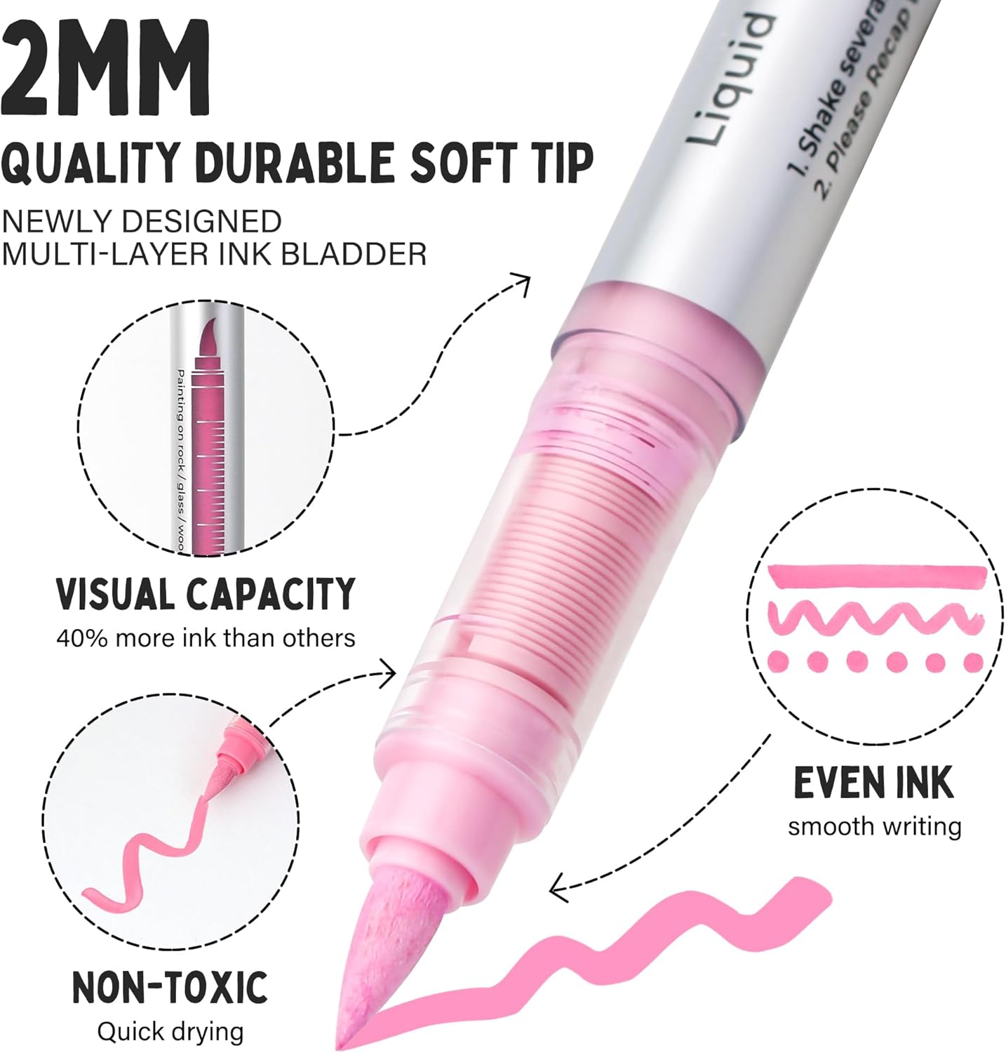 - EASY TO USE - Unlike ordinary press-on markers, we use a straight liquid design, shake the ink evenly before use, open the cap and use it directly without ink spraying, you can draw details or scribble large areas. Cover the cap after use, sealing well, the pen will not dry.