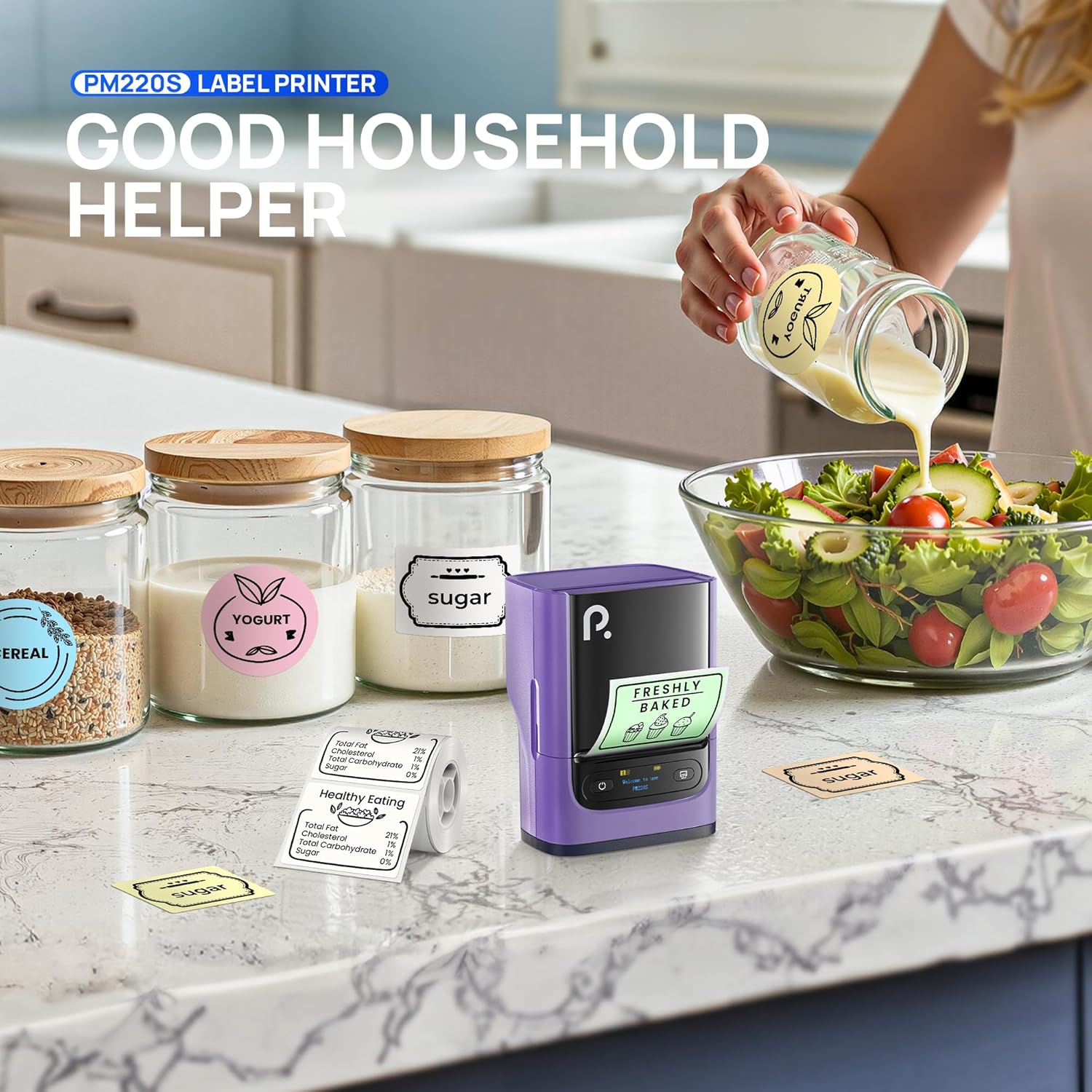 - 【Widely Use】PM220S thermal printer compatible with Smartphone & PC. Easily connect to your smartphone in just 5 seconds via 4.0 for fast and convenient printing. you can easily print any label you need like price labels, clothing labels, address labels, folder labels, date labels and so onIdeal label printer for a variety of festival labels need, including Christmas, Halloween, Thanksgiving, Father's Day, Mother's Day