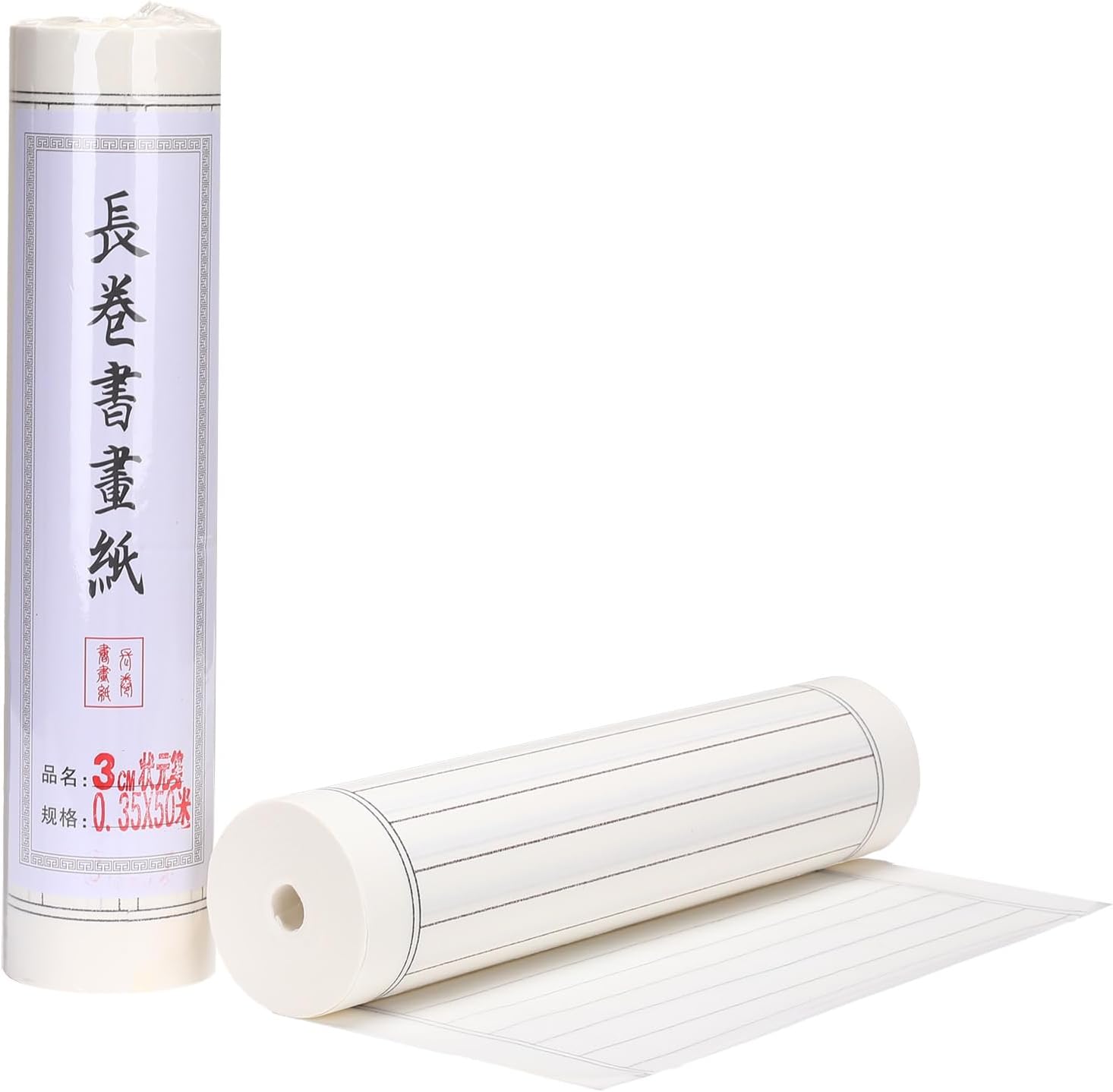 MEGREZ Chinese Calligraphy Brush Writing Practice Paper, Xuan Paper Roll Rice Paper Calligraphy with Vertical Grids, 35cm x 50m(13.8in x 164ft), Half Raw Ripe Xuan Paper, 3cm/Grid, White