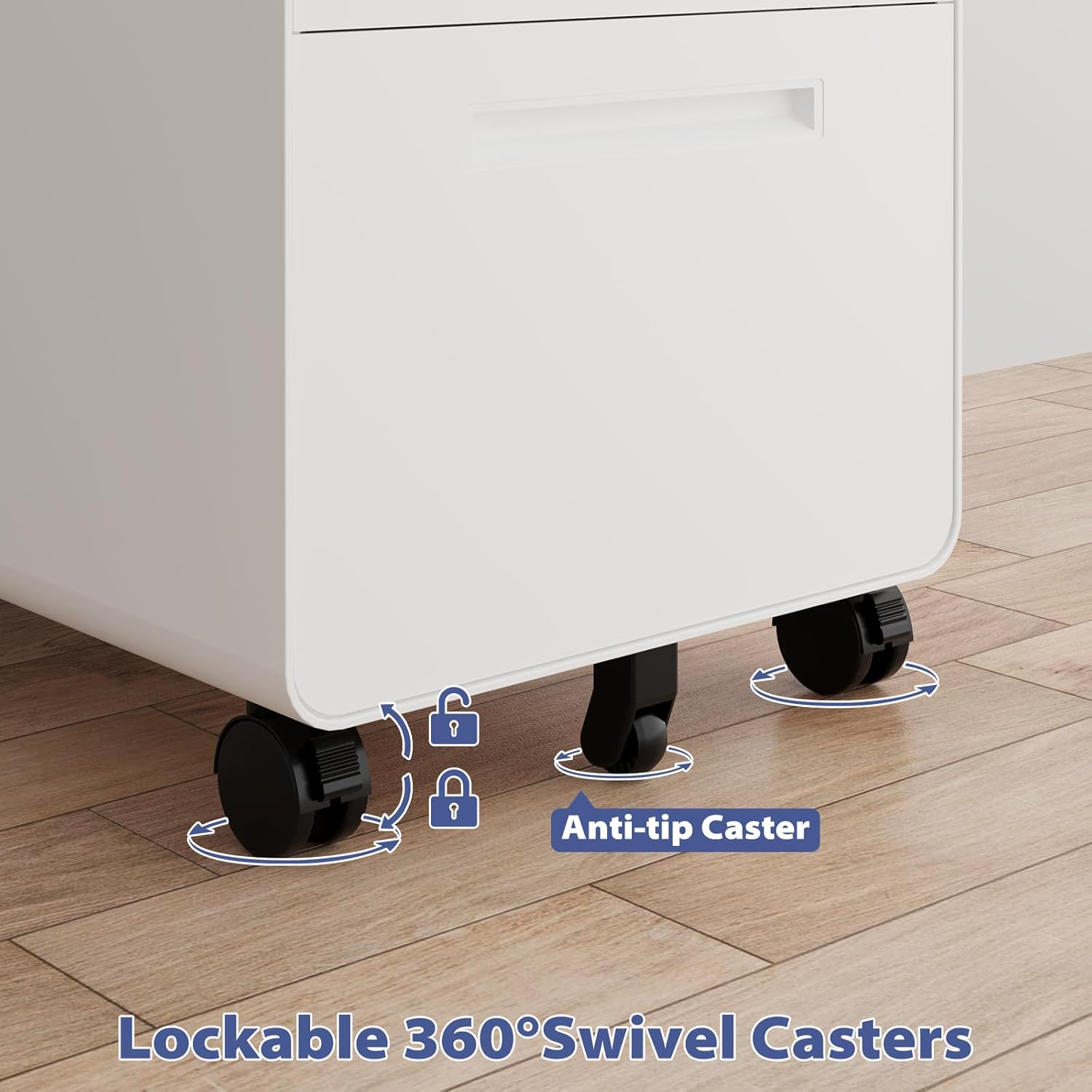 - 【Flexible and Convenient & Lockable Storage Cabinet】: The rolling file cabinet is equipped with 4 360-degree rotating casters (2 lockable, 2 standard), which are easy to move and allow you to move the under desk storage freely anytime and anywhere. Lockable casters provide stability, and it can be secured next to or under a table. Ensures smooth rolling, prevents scratches, and protects floors, suitable for various environments such as offices, classrooms, and homes.