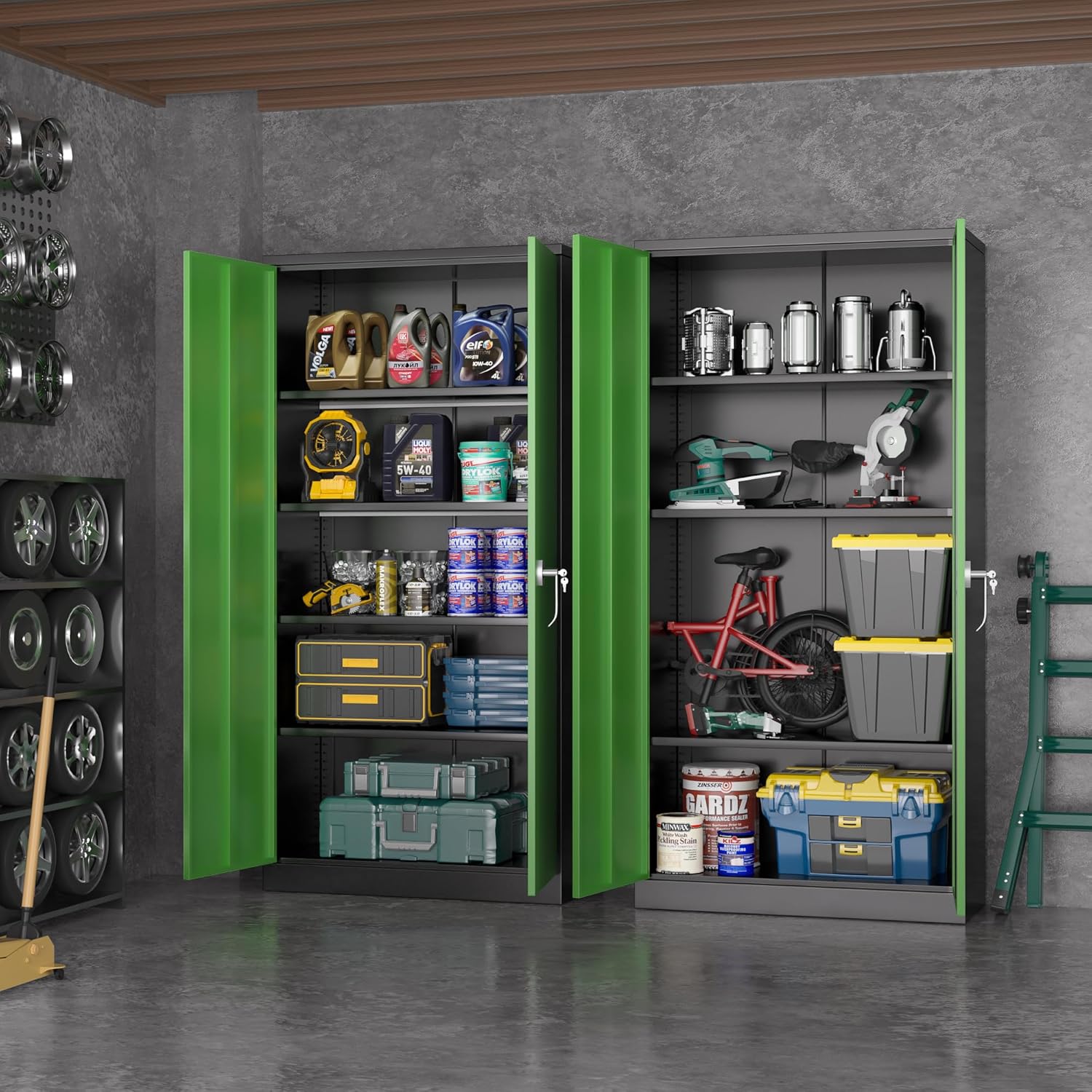 Greenvelly Metal Storage Cabinet,72" Steel Storage Cabinets with Doors and Adjustable Shelves, Metal Tool Cabinets, Locking File Cabinet for Home Office, Garage, School (Black Green36 Wx18 D)