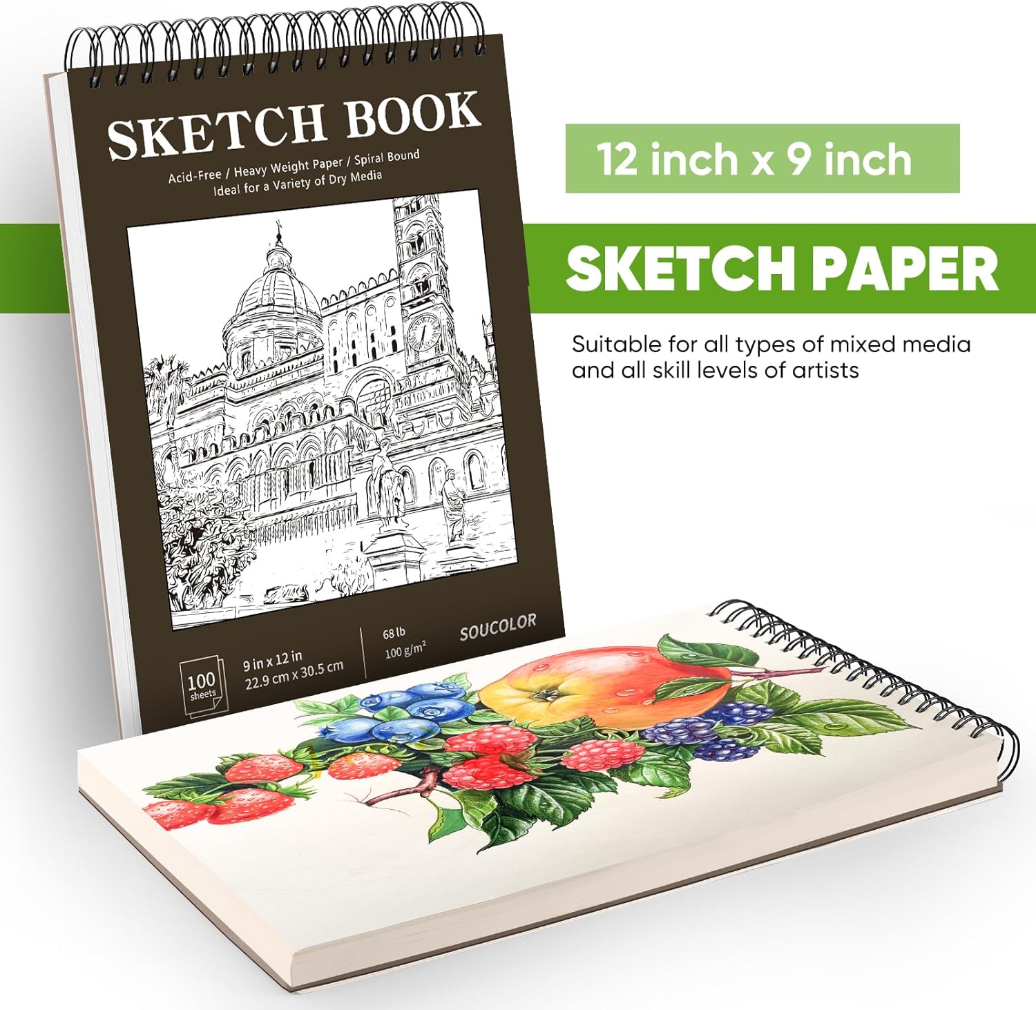 Classroom Must Haves Supplies for Teacher Student, Soucolor 9" x 12" Sketch Book 100 Sheets, Back to School Supplies, Art Sketchbook, Acid Free (68lb/100gsm) Artist Drawing Book Painting Sketching Pad