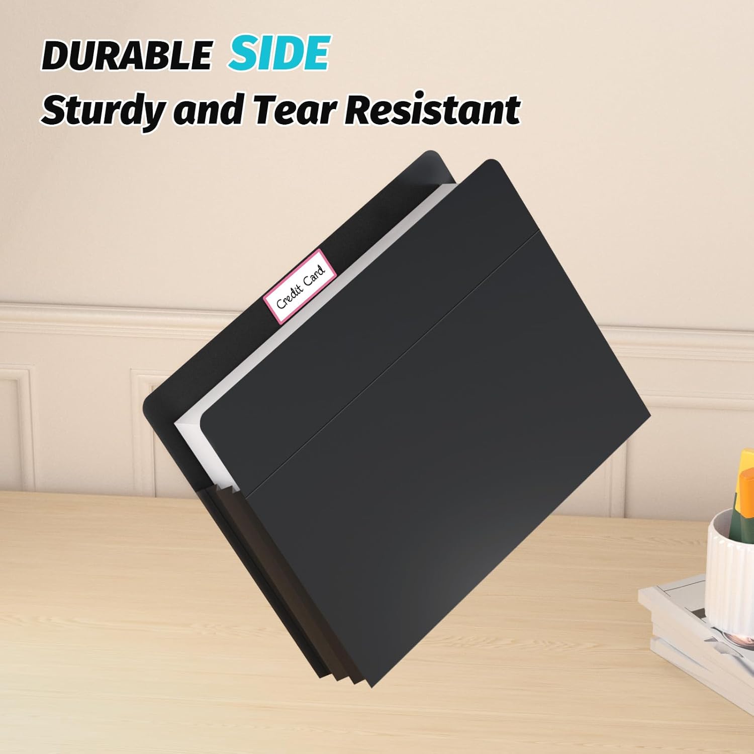 Ansook Plastic Expanding File Pockets,Heavy Duty with 3.5”Expansion,High Capacity Durable Accordion File Jacket,Letter Size,Poly Folder,Straight-Cut Tab, for Manila Folder,Bulk Archiving, 5 Pack,Black