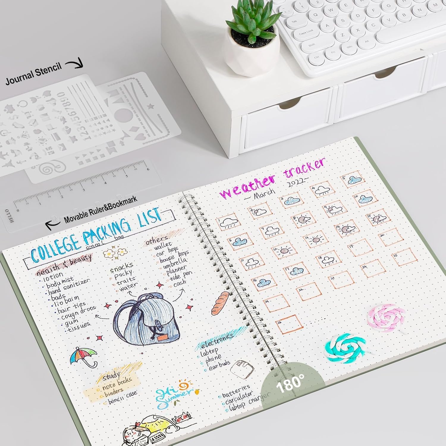 - MULTIPURPOSE NOTEBOOK: Ideal for travel, school, home, and office use. Our dot grid notebook is perfect for bullet journaling, daily journals, travel journals, recipe journal, note-taking, doodling, Artist drawing, Bible study, and planning. It makes a thoughtful gift for friends, family, classmates, and colleagues