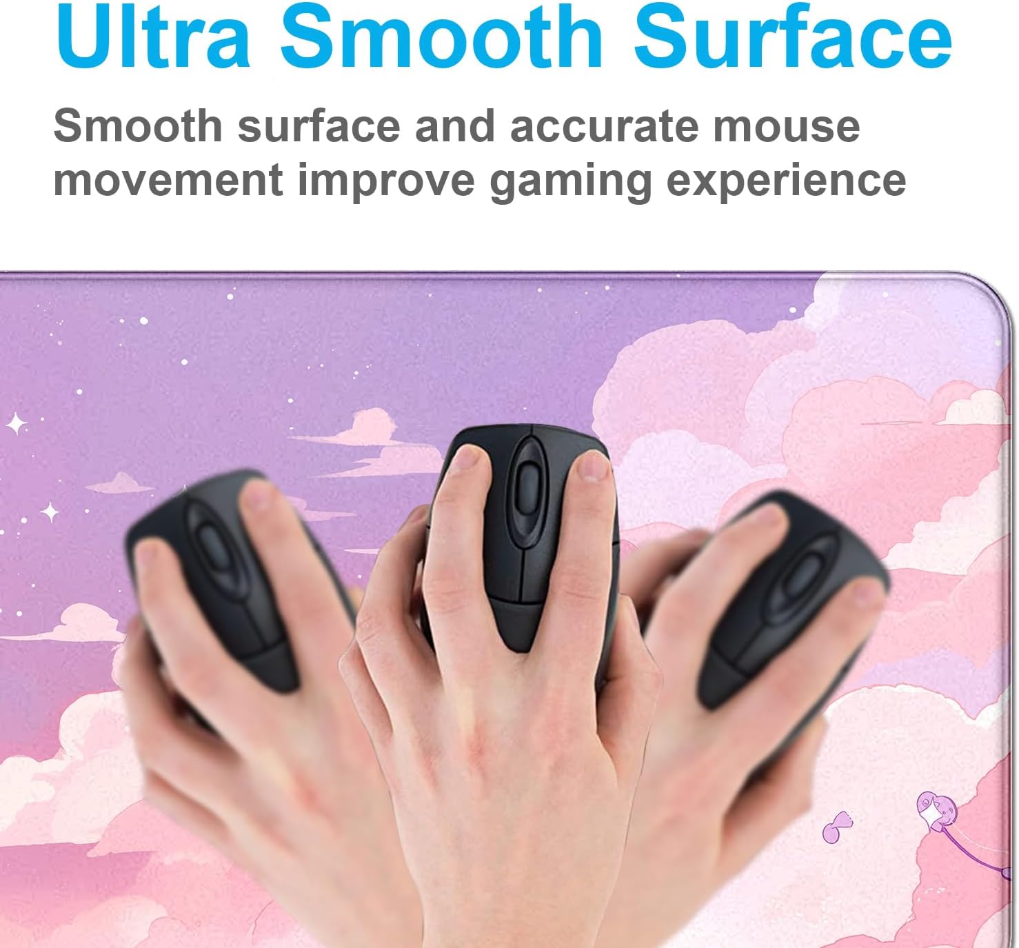 - Non-Slip Natural Rubber Base: This extended large mouse pad is soft and thick 3 mm/0.12 inches, the base is made of high quality natural rubber, which is harmless to human health. There will be no unpleasant smell. The mouse pad is designed with dense textured rubber, which can firmly grasp your desktop, avoid random movement, and provide stable operation for your mouse/keyboard.