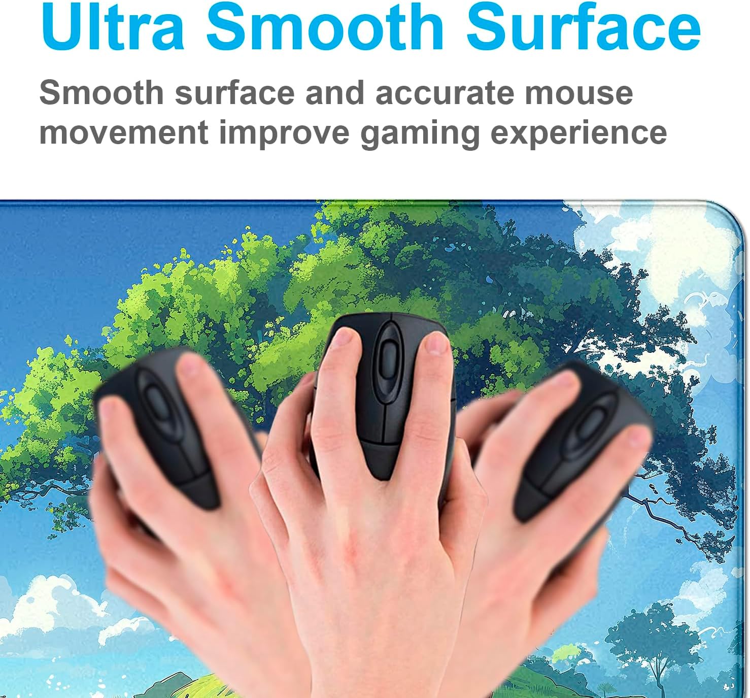 Simple and Cute Anime Landscape Computer Mouse Pad, Large Green Plant Outdoor Landscape Office Desk Pad, 35.4 x 15.7 x 0.12 Inch Sewn Edge Non Slip Rubber Base Mouse Pad