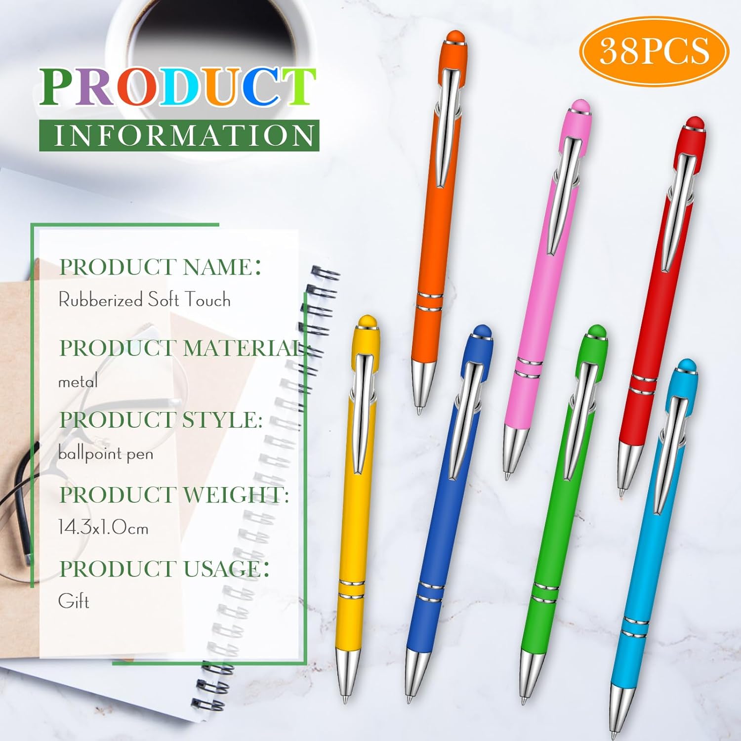 - Beautiful pens: our rubberized ballpoint pen have the bright color; Rubberized barrel gives a nice-touch grip for extra comfort; This eye-catching metal pen will be a favorite as a present or at parties, conventions, trade shows, corporate events and so much more