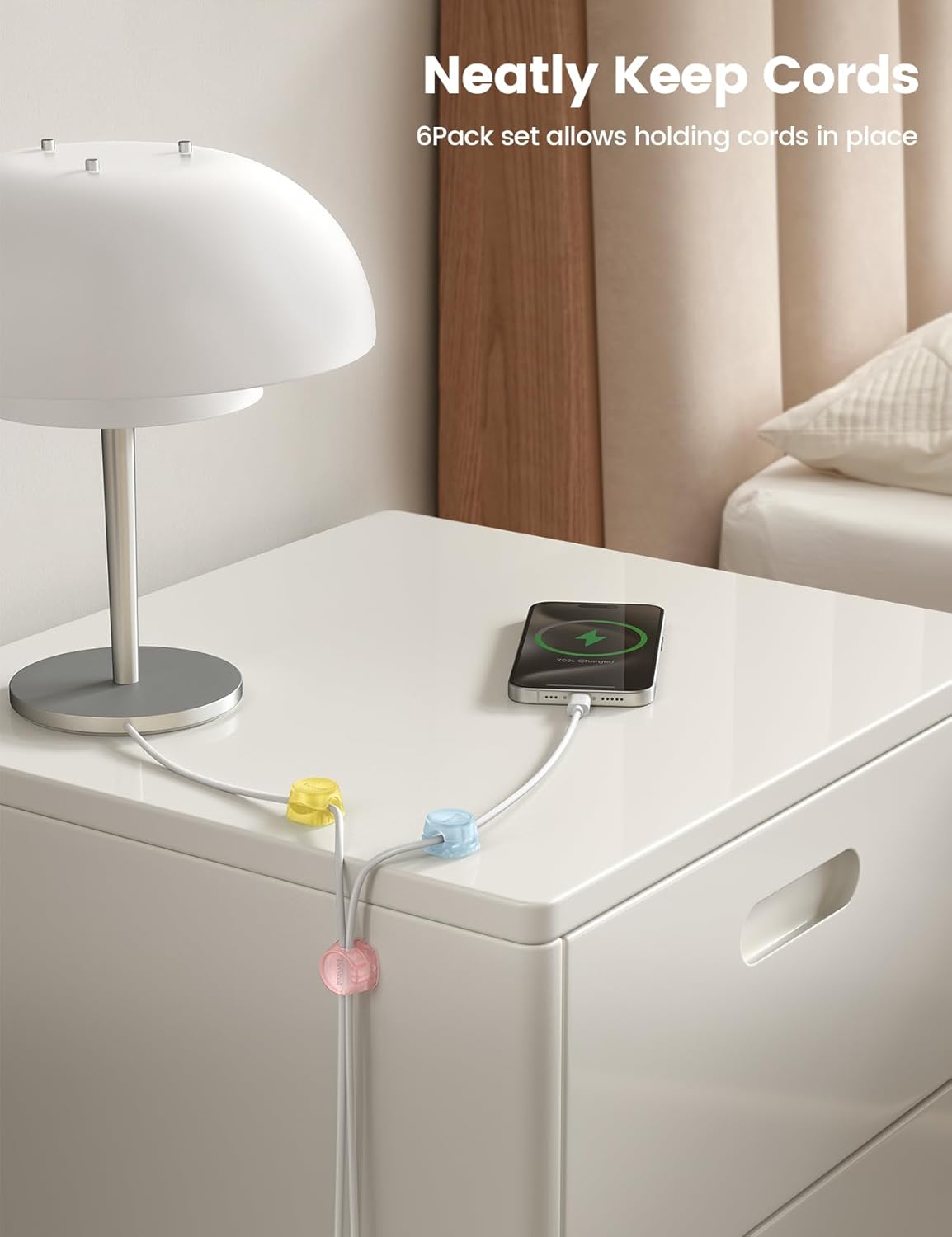 6 Pack Cord Organizer, Desk Accessories - Lamicall Colourful Cable Management, Home Office Workspace Organization Accessories, Nightstand Wire Keeper Desk Decor, Dorm Room Essentials Desktop Gadgets