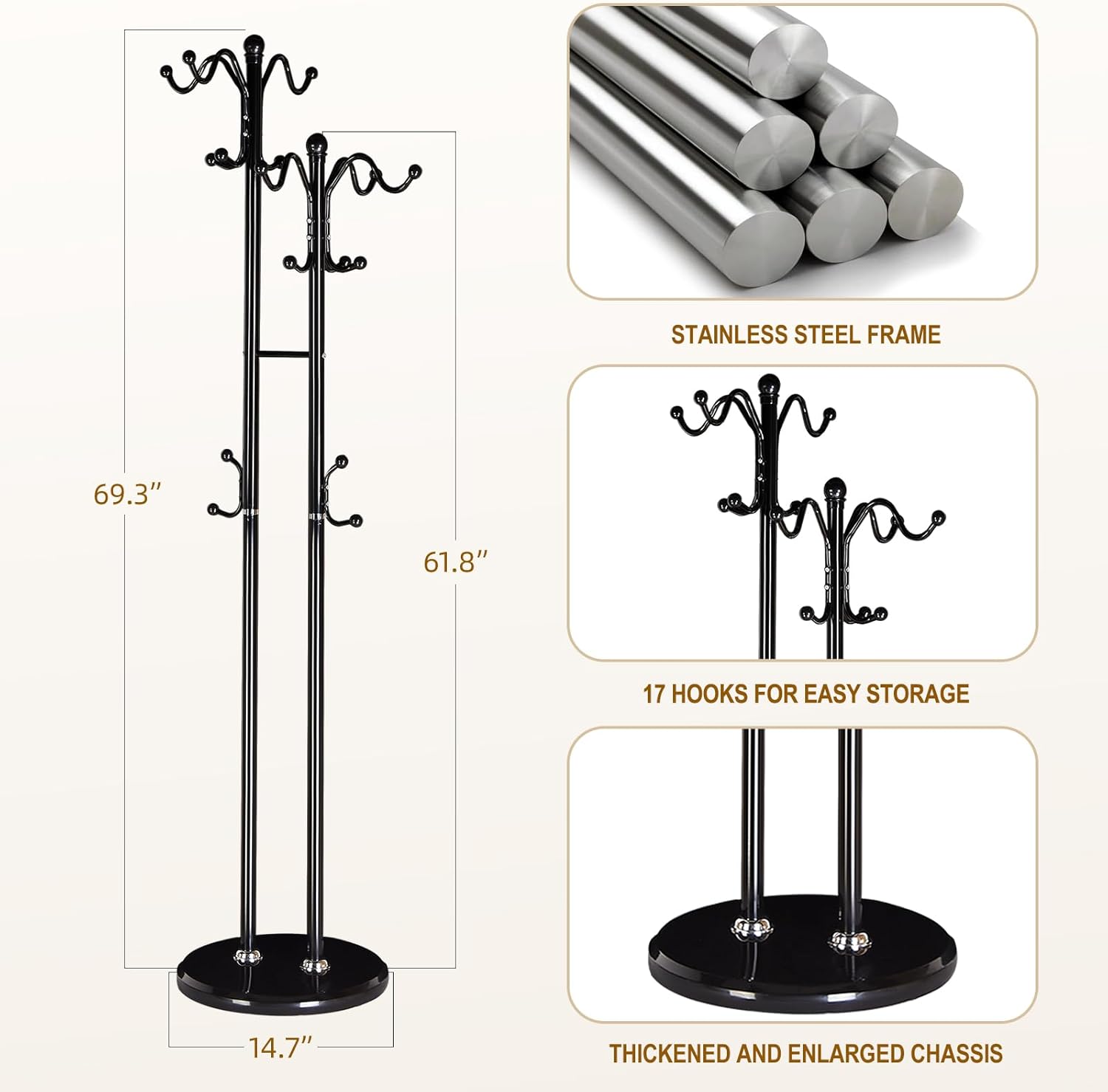 - EASY TO ASSEMBLE: The coat tree stand equipped with installation tools and instructions, quick to assemble. The coat stands can be easily installed in just 5-10 minutes. Then you will get a fancy standing coat tree stand that is both economical, beautiful and practical