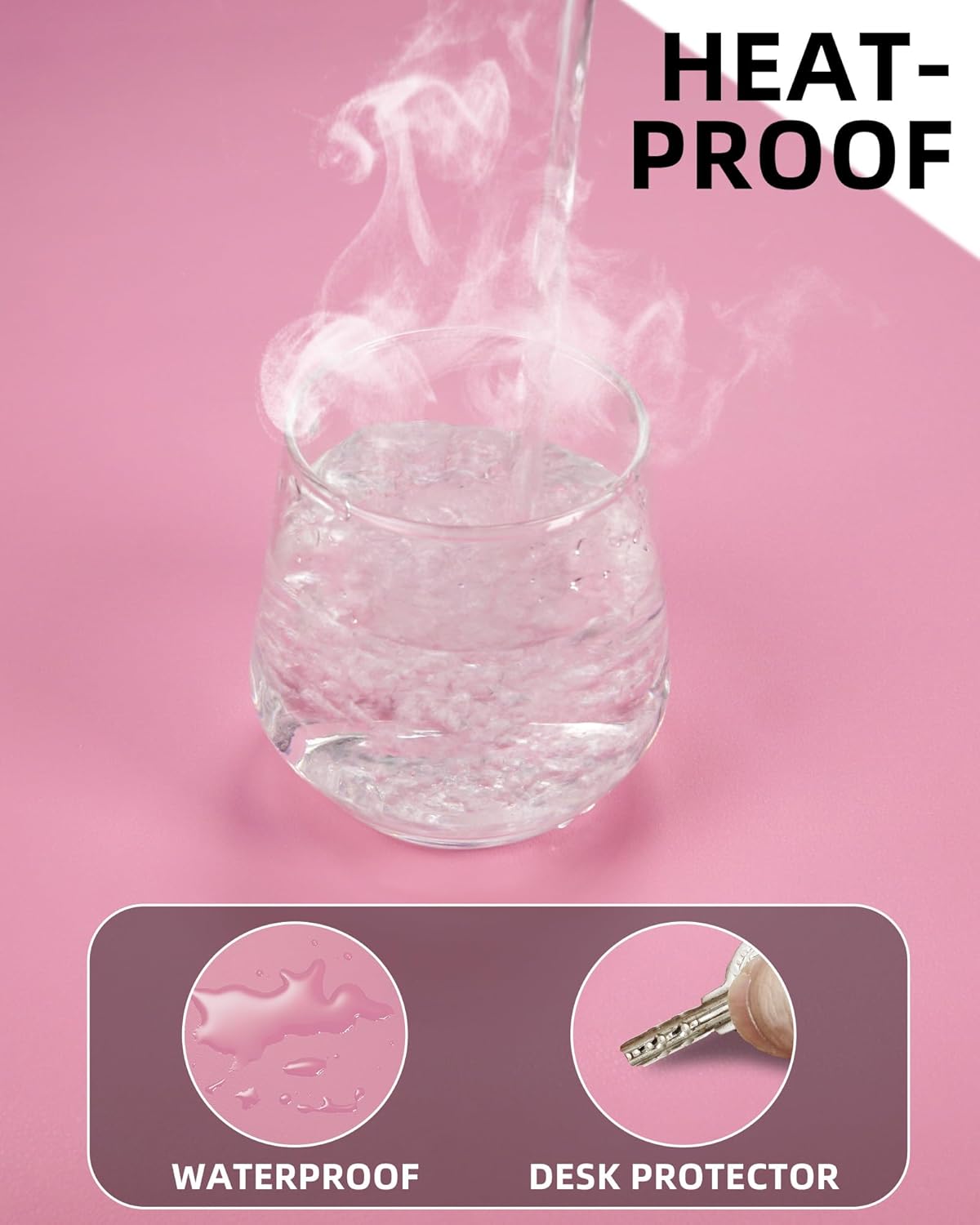 Pink Desk Mat, PU Leather Desk pad Large Mouse Pad, Non-Slip Desk Pad, Waterproof Desk Blotter Mat, Desk Cover Mat for Office and Home (31.5" x 15.7")