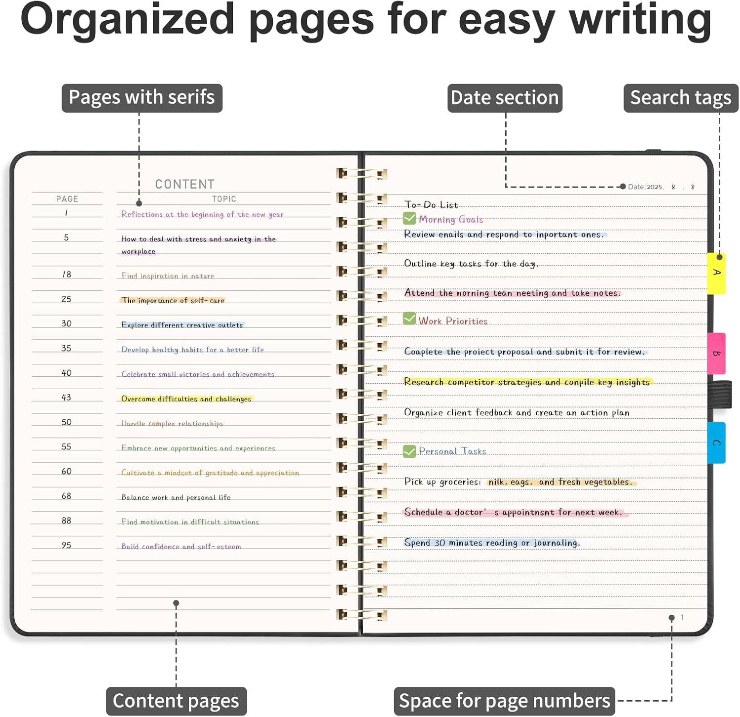 - ORGANIZED AND PRACTICAL NOTEBOOK: Our lined spiral notebook features 140 numbered pages and 4-page blank table of contents. In a large B5 size 7.6" Γ 10", providing ample writing space while remaining lightweight and easy to carry