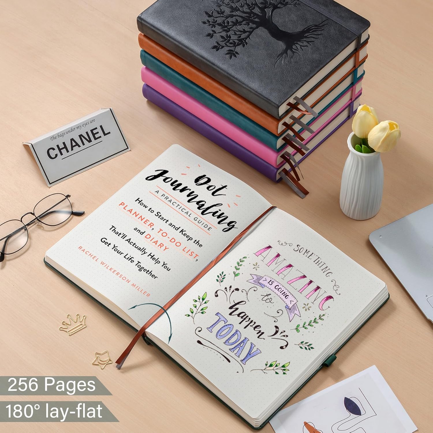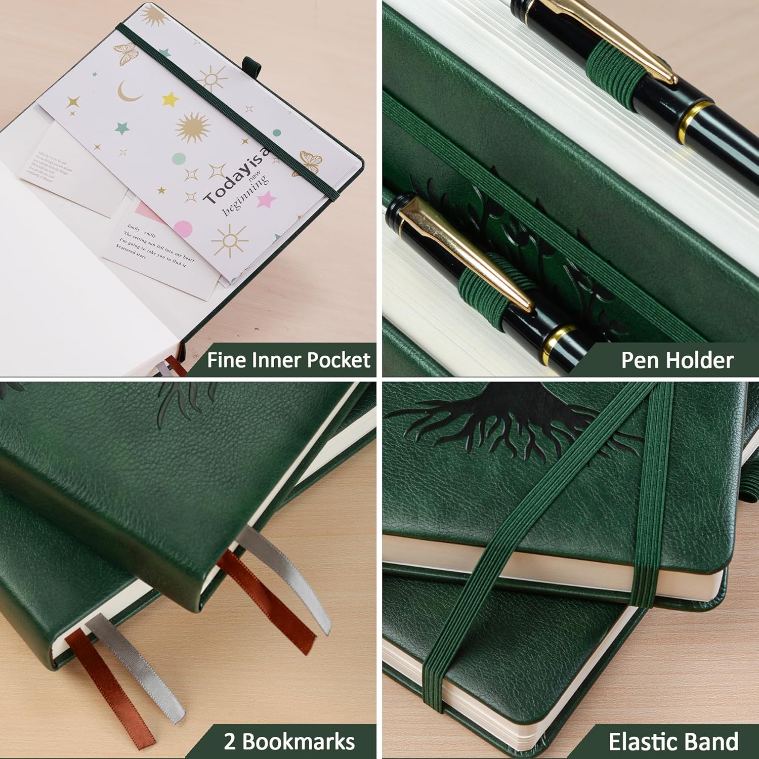 ZXHQ B5 Dotted Journal-150 gsm Thick Paper 256 Pages, Dot Grid Notebook, Tree of Life Design, Fine Inner Pocket - 7.7" × 10" Dark Green