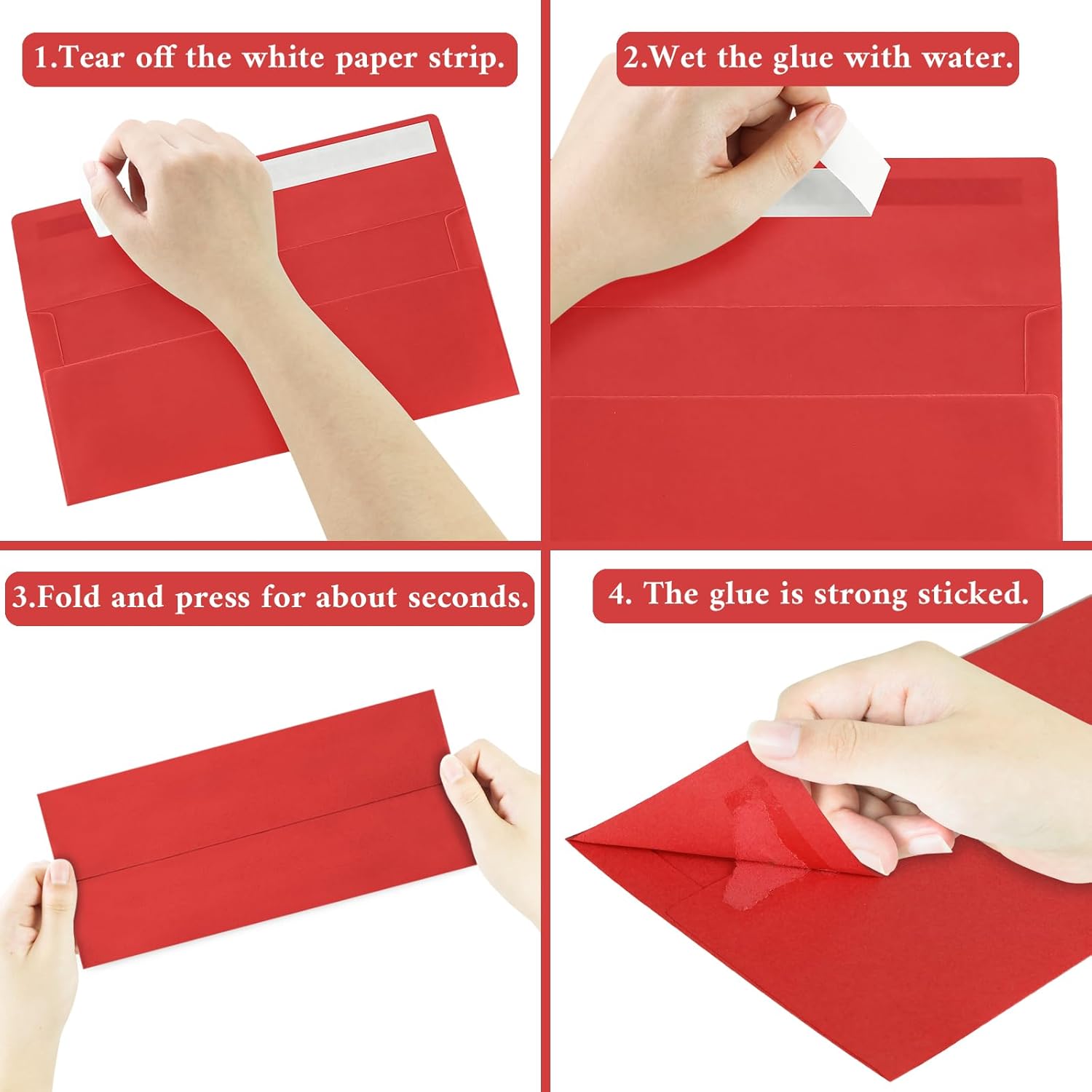 - 【Red #10 Business Envelopes】These #10 business envelopes feature a red color. The envelopes kit contains 100 pieces 4 1/8 x 9 1/2 Inches red envelopes, perfect for your office or home purposes
