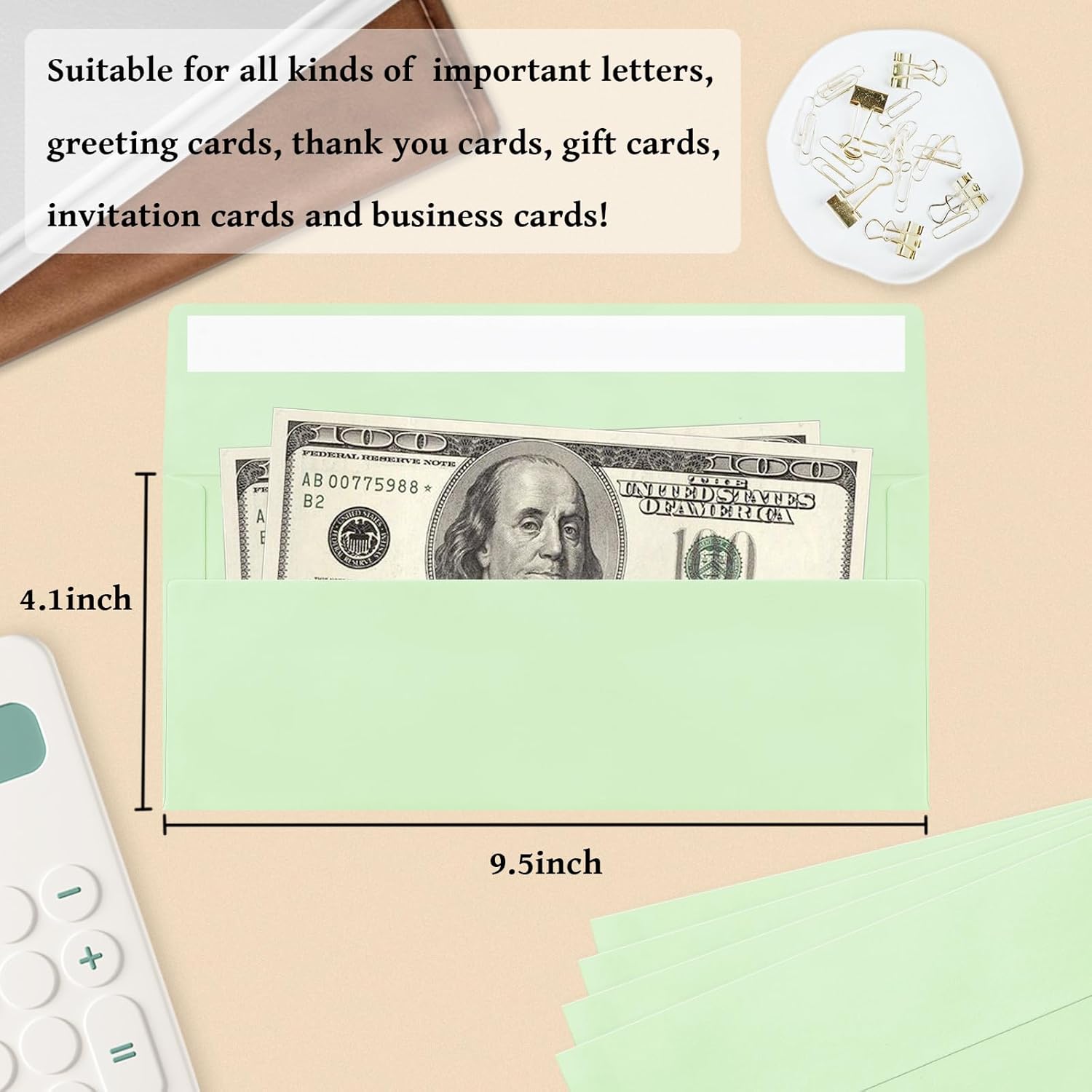 - 【Light Green #10 Business Envelopes】These #10 business envelopes feature a light green color. The envelopes kit contains 100 pieces 4 1/8 x 9 1/2 Inches light green envelopes, perfect for your office or home purposes