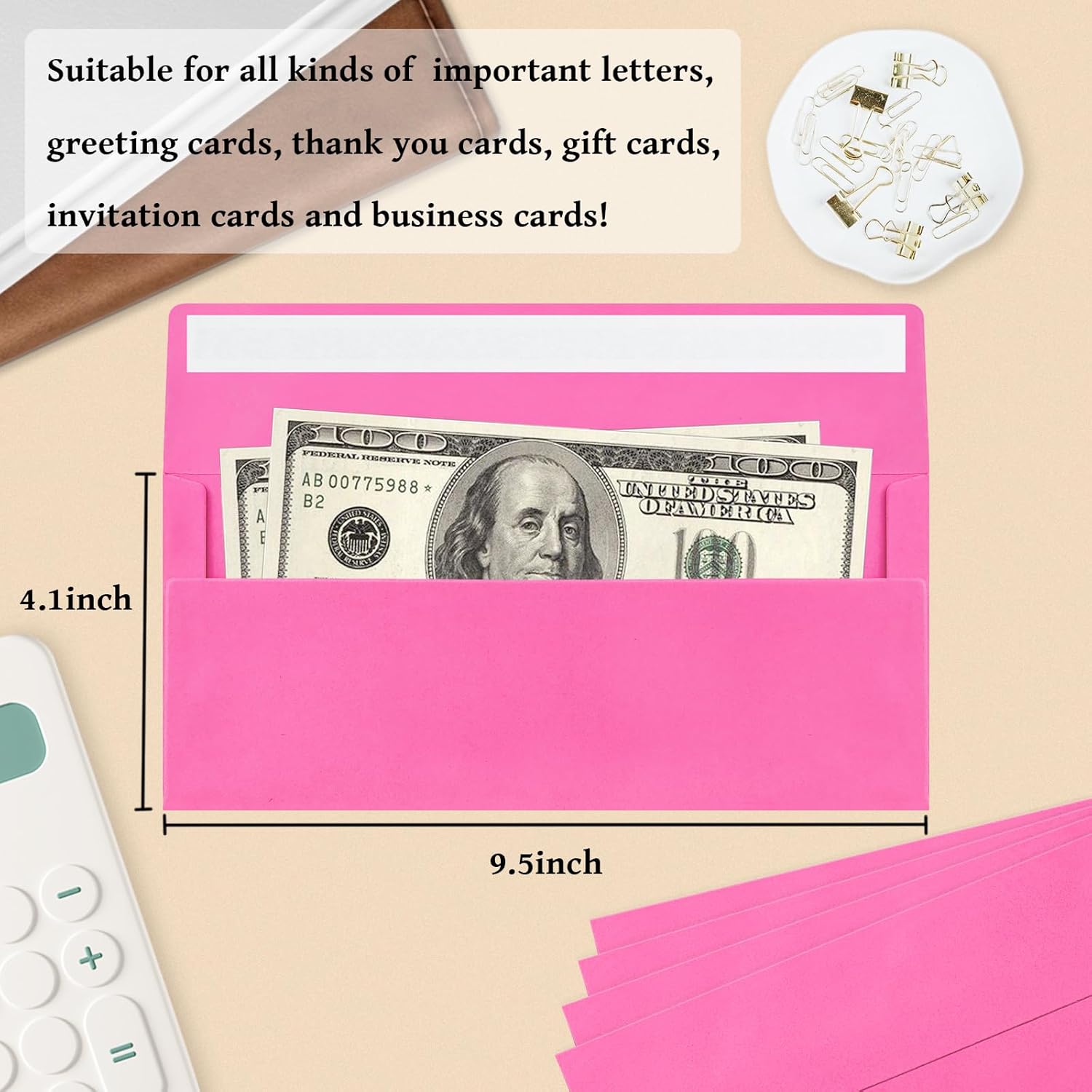 - 【Rose #10 Business Envelopes】These #10 business envelopes feature a rose color. The envelopes kit contains 100 pieces 4 1/8 x 9 1/2 Inches rose envelopes, perfect for your office or home purposes