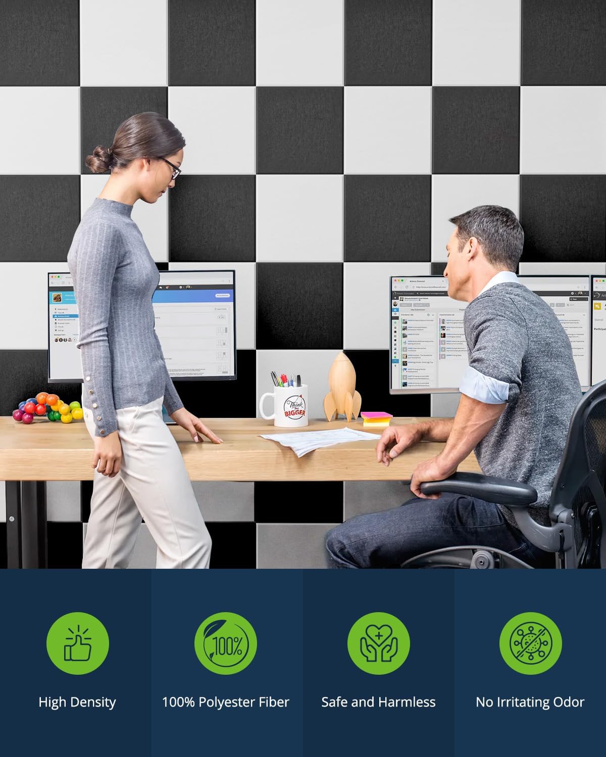 - Stylish Modern Design: The design of the square sound proofing panels for walls is stylish and modern, simple and generous. Noise cancelling wall panels/white wall panels have a classic black and white color scheme. Our sound panels noise reducing for walls are easy to cut and place in various ways, adding delicacy and beauty to your space, while perfectly blending with the surrounding environment.