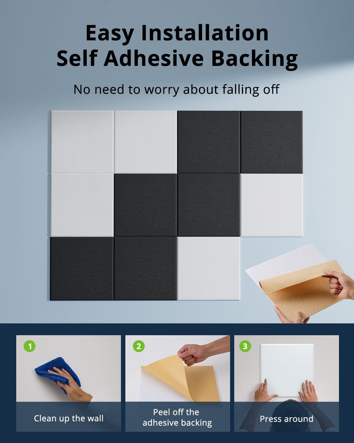 - Stylish Modern Design: The design of the square sound proofing panels for walls is stylish and modern, simple and generous. Noise cancelling wall panels/white wall panels have a classic black and white color scheme. Our sound panels noise reducing for walls are easy to cut and place in various ways, adding delicacy and beauty to your space, while perfectly blending with the surrounding environment.