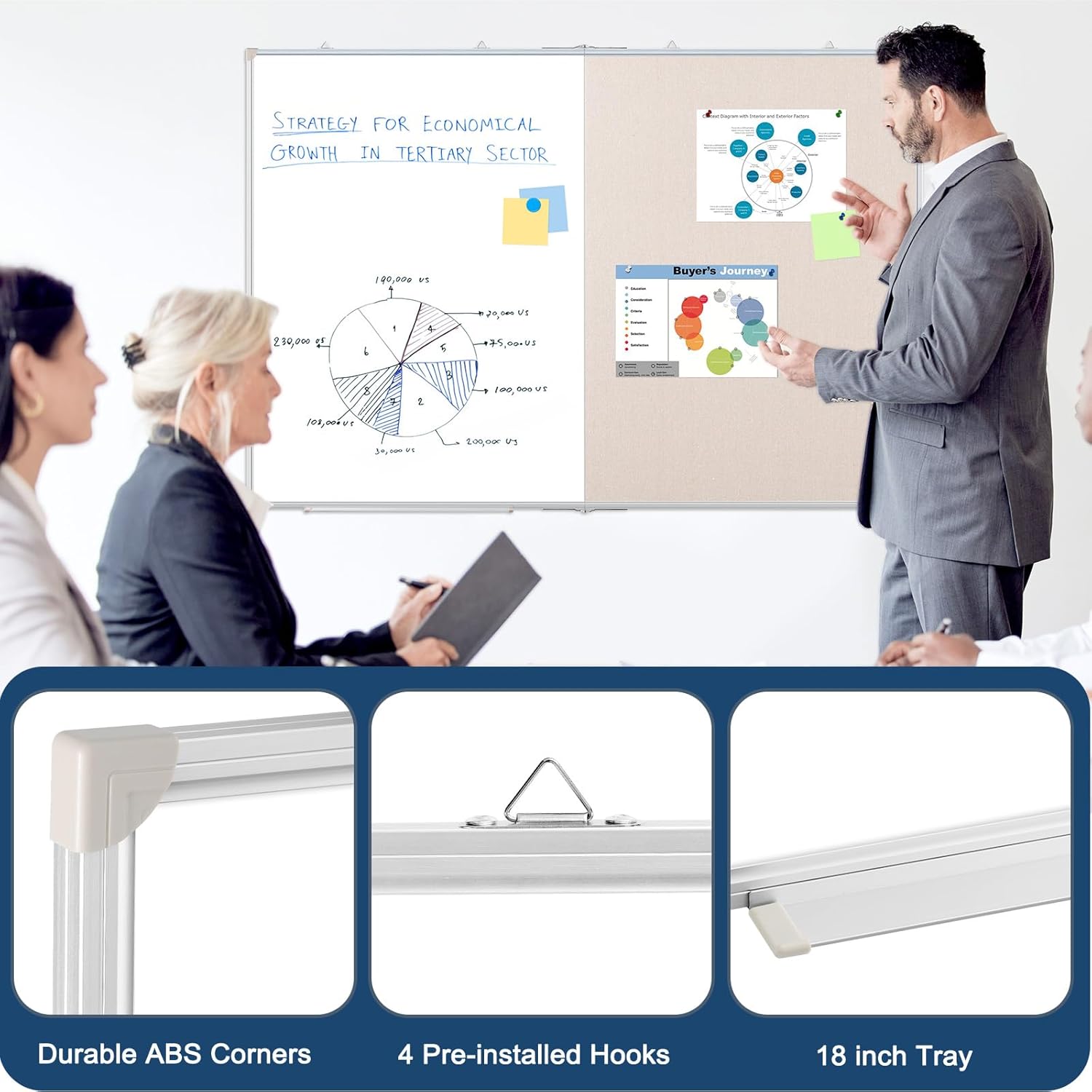 Large White Board Dry Erase Foldable Bulletin Board Combo, 48" x 36" Double Sided Dry Erase Board for Wall, Magnetic Whiteboard Bulletin Board with Linen for Office, Home, School, Kitchen -White