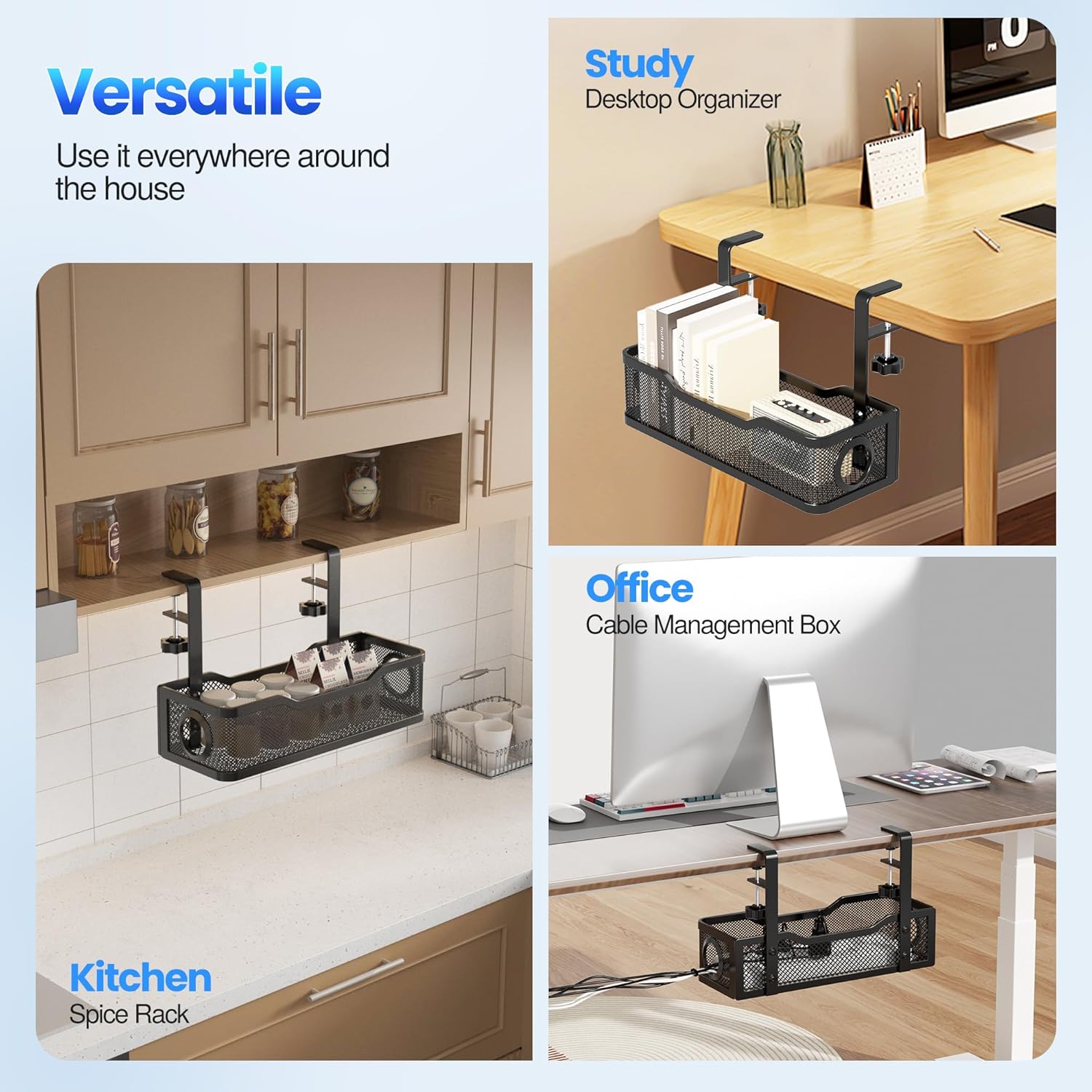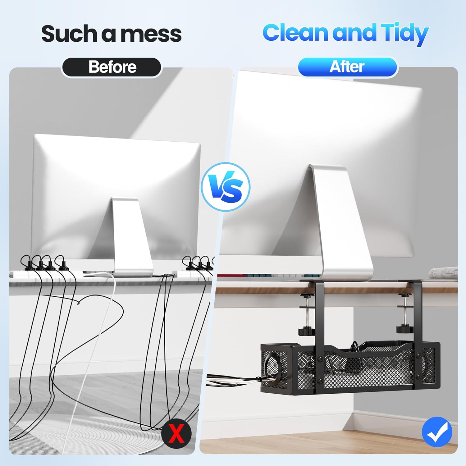 - ๐๐๐ฏ๐ ๐๐ญ๐จ๐ซ๐๐ ๐ ๐๐ฉ๐๐๐- No more mess. No more hanging or tangled wires. Giving you a total wire management under desk. Organizes any data cables, power cords, outlet strips off the floor. You can hide wires from your feet to keep your desks and floors clean and tidy.