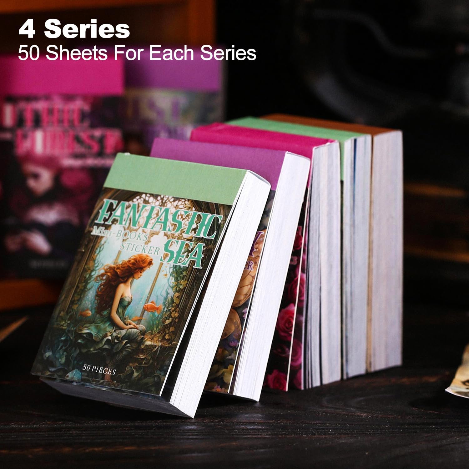 4Pcs Washi Sticker Books, Fantasy Stickers for Scrapbooking, DIY Crafts, Mini Journaling Supplies & Junk Journal Ephemera